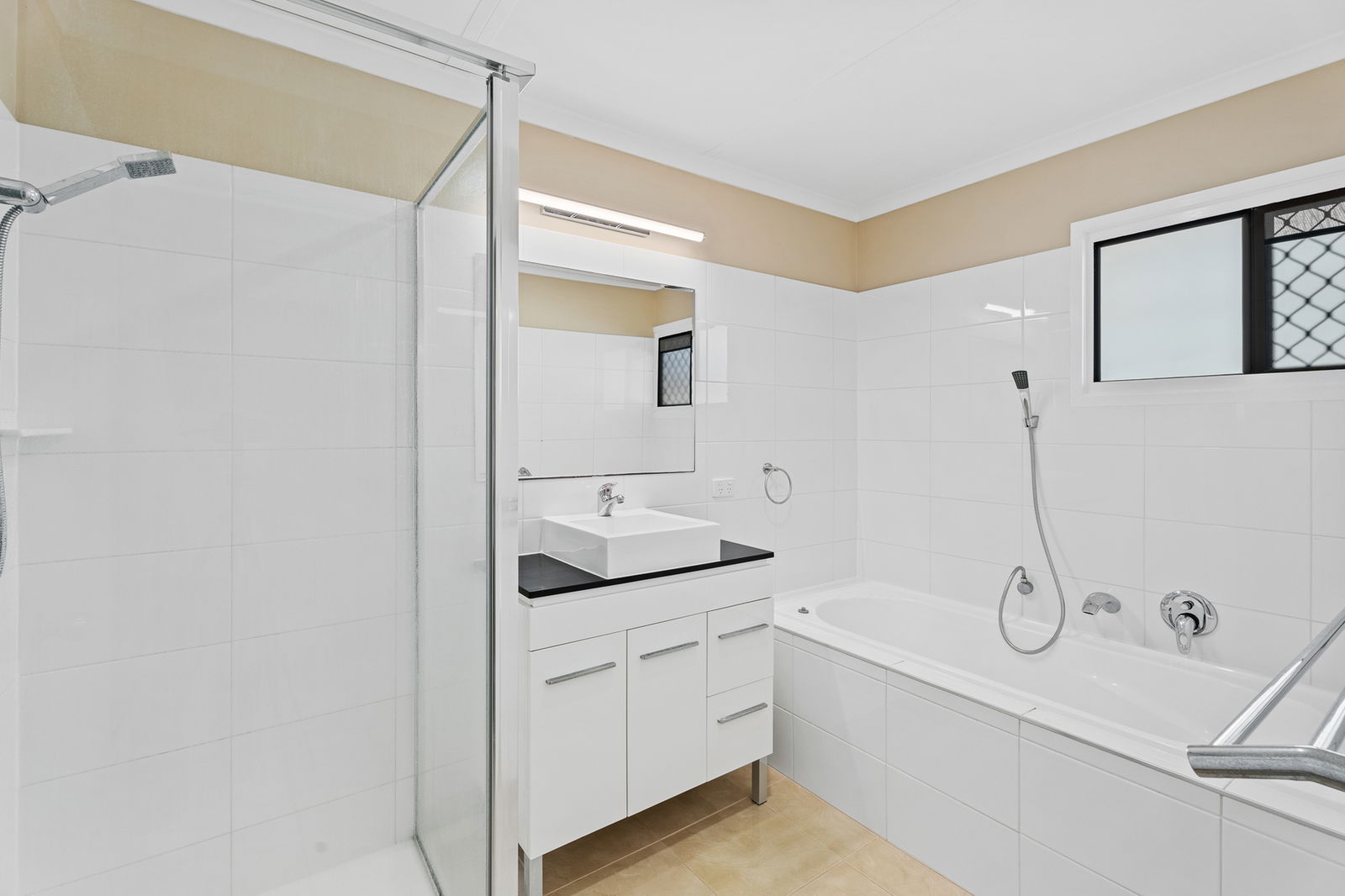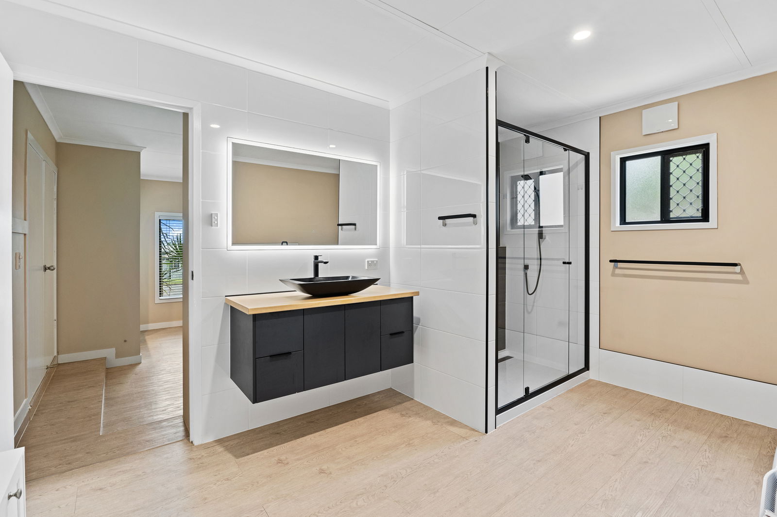 Main ensuite (March 2021) with large 1500mm shower + integrated laundry