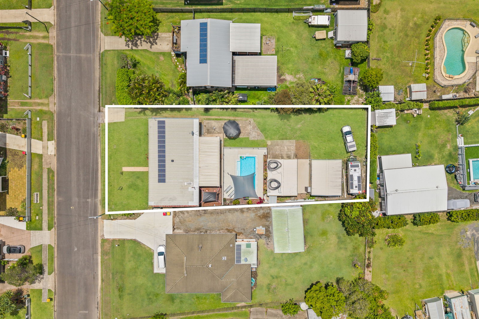 Outdoors, the property shines. The mineral salt inground pool (installed Nov 2021) includes a glass media filter and measures 8m x 4.5m - perfect for summer living. DIY heating is installed on the shed roof, and a heat-pump heater (not connected) can remain with the home.