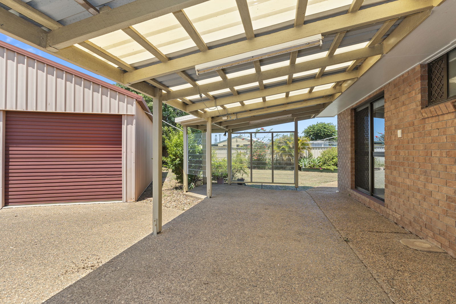 An undercover, concrete patio with louvers that opens to the rumpus room or third bedroom, enabling seamless indoor-outdoor living.