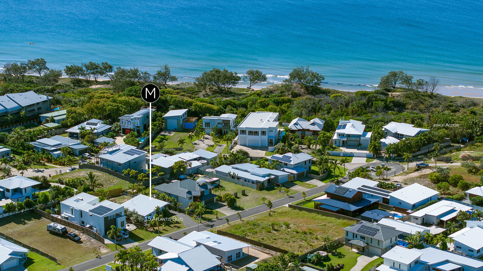 Just 270 metres from the sugar-white sands of Agnes Beach, this boutique sanctuary at 15 Atlantis Blvd invites you to experience Queensland's most coveted beachside lifestyle. Set on a generous 780 sqm block among prestigious homes, every detail of this residence is designed to capture the essence of effortless sophistication and relaxed living.