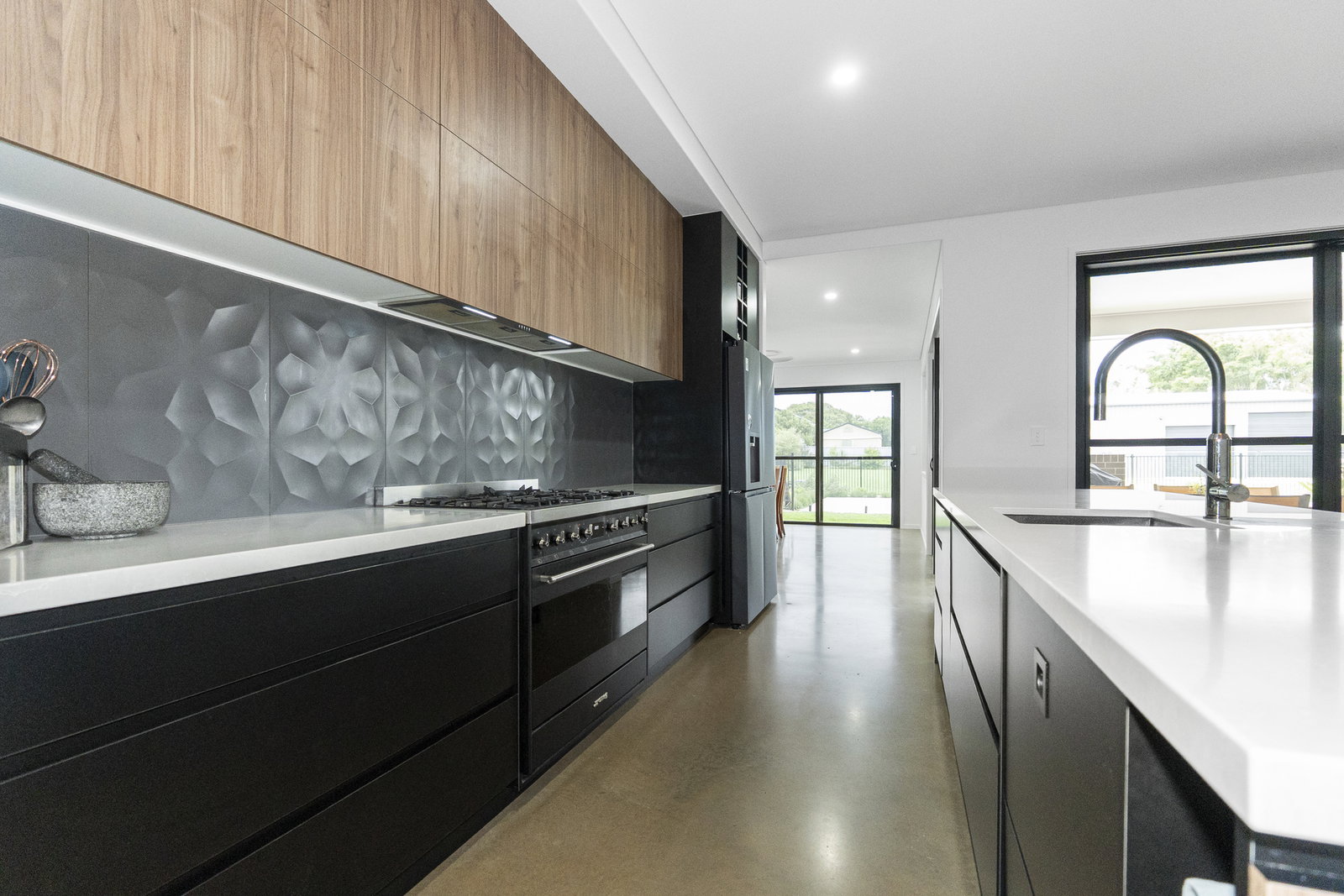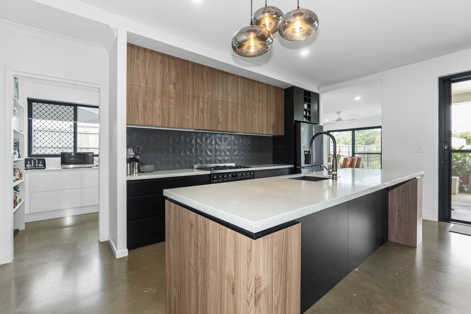 - The chef's kitchen is as functional as it is beautiful - featuring an island bench with breakfast bar and pendant lighting above, stone benchtops, a large Smeg electric oven with gas cooktop, and a suite of high-end appliances, all flowing seamlessly into a generous walk-in pantry which flows through to the laundry with abundant linen space