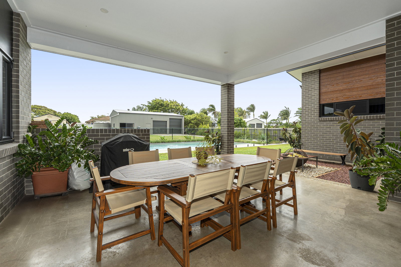 - A pebbled fire pit area neighbours the alfresco - the perfect spot to gather as the evening sets in