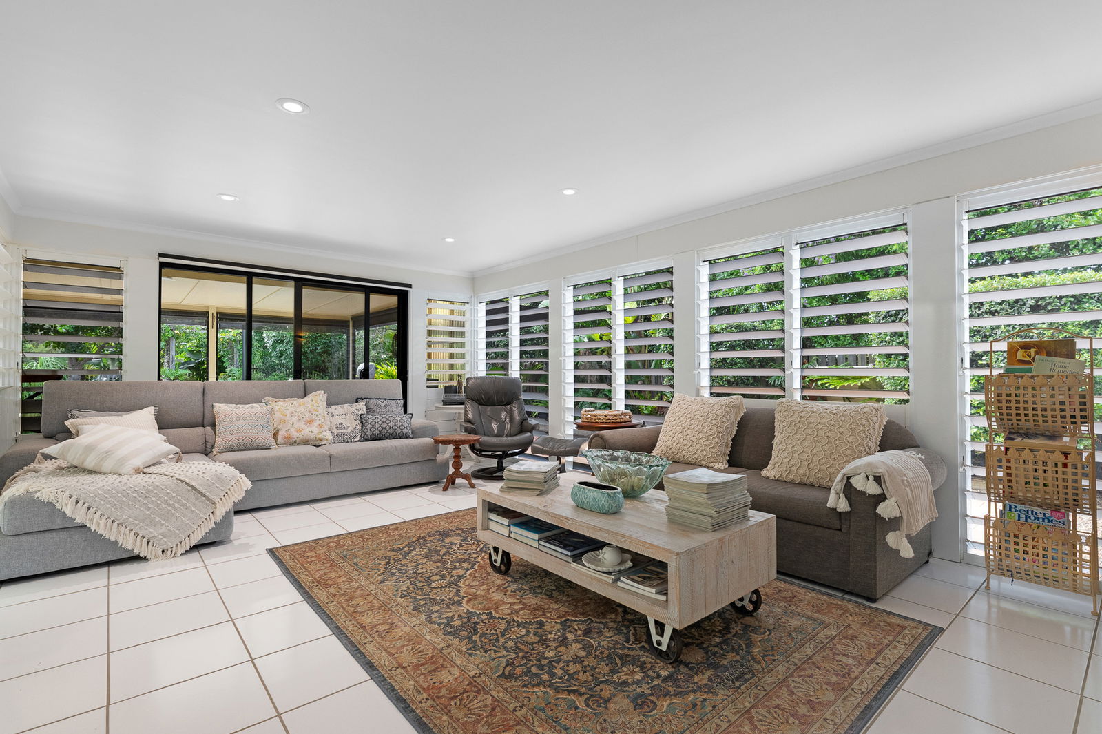 •Large sunroom with plantation shutters, ideal as additional living space or guest accommodation