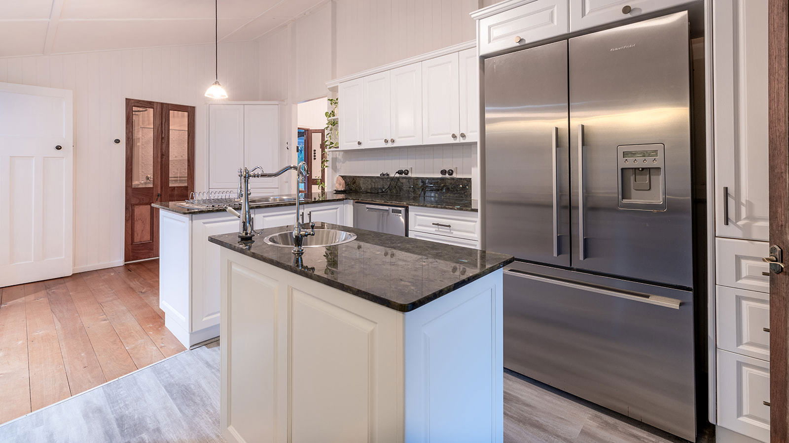 Seamless indoor-outdoor living is at the heart of the design. The expansive 4.5-metre-wide wrap-around deck creates multiple zones for entertaining, dining, or simply unwinding while overlooking the brand-new magnesium plunge pool – a private, resort-style retreat perfectly suited to the Queensland climate.