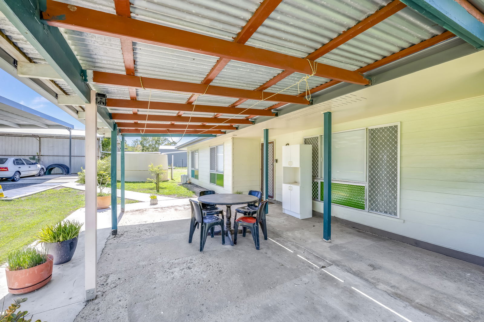 - Single carport with additional BBQ space