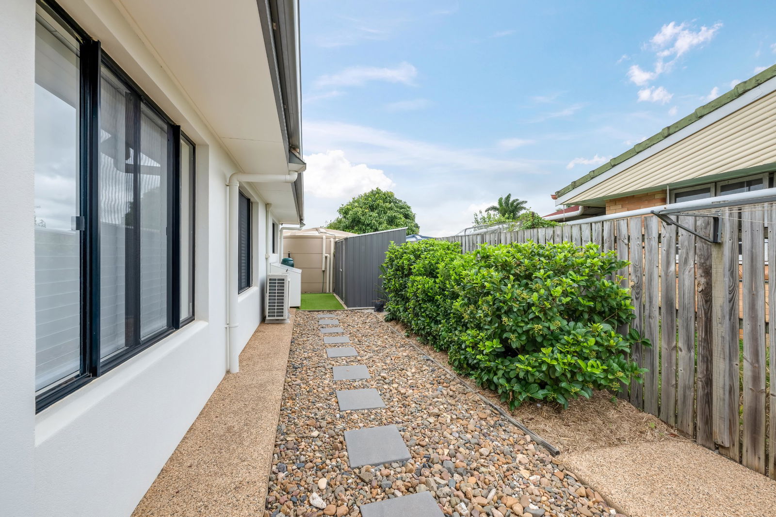 - Side access to rear shed for extra storage or workshop