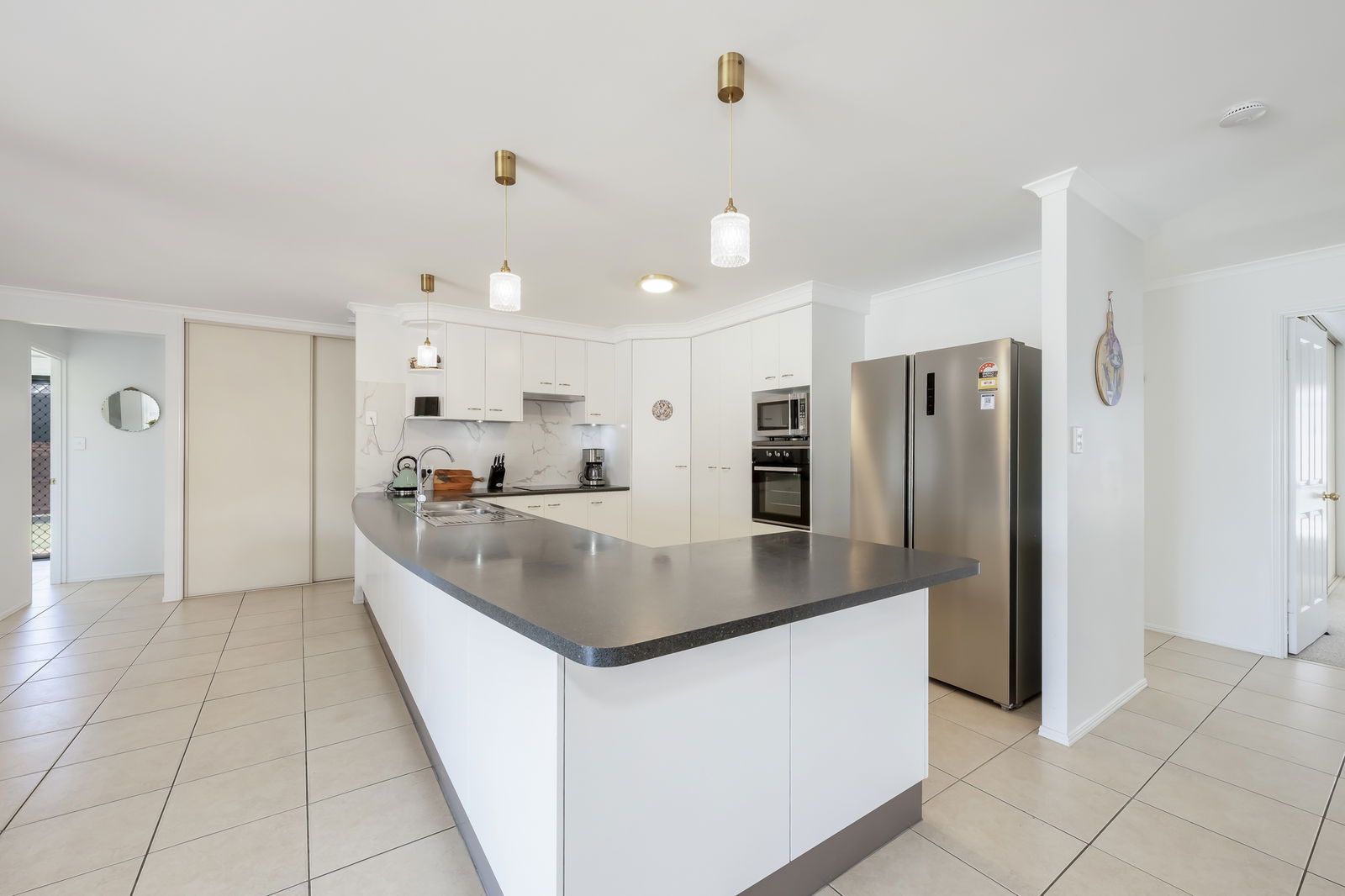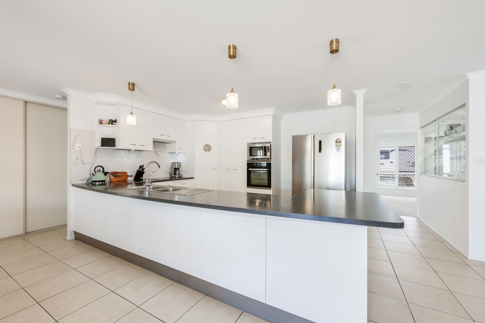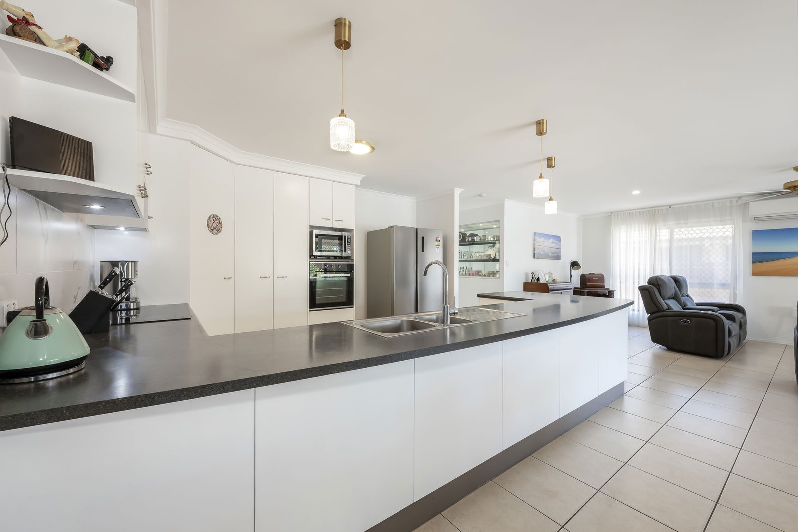 - Well-appointed kitchen with ample cabinetry, large bench space, dishwasher, electric oven and cooktop