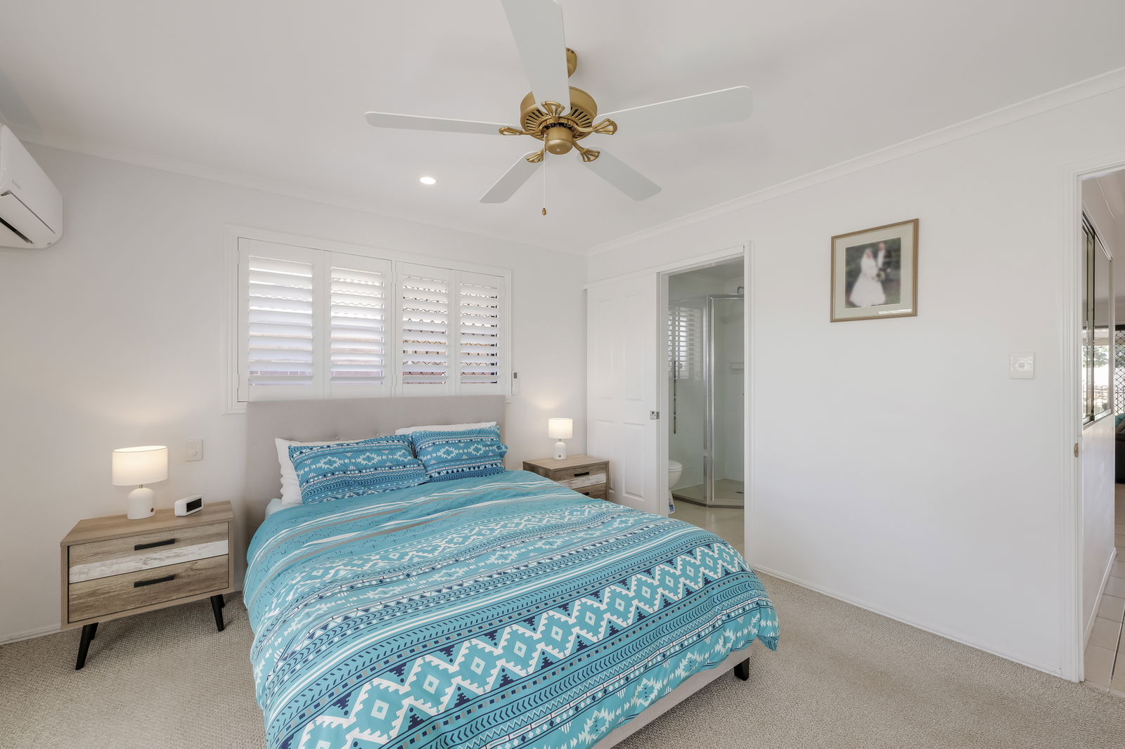 - Master suite with ensuite, double vanity, plantation shutters and air-conditioning