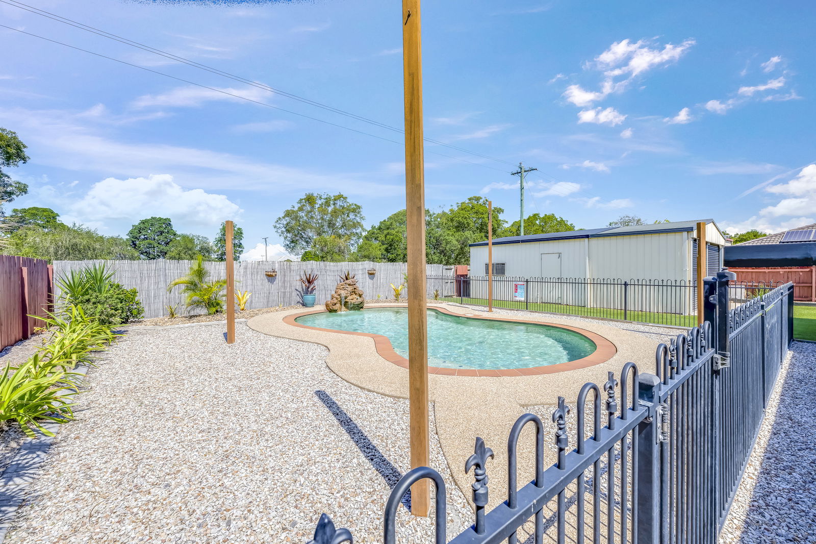 - Large 50,900L chlorine inground pool with waterfall creating a private resort feel