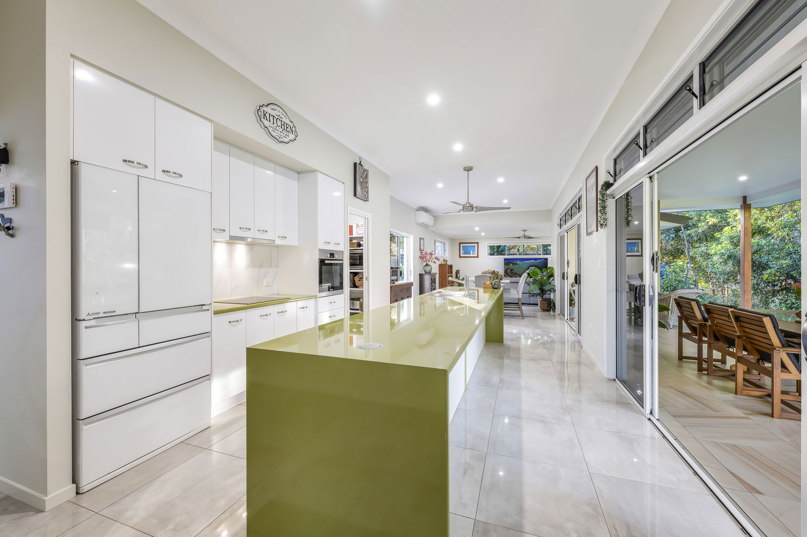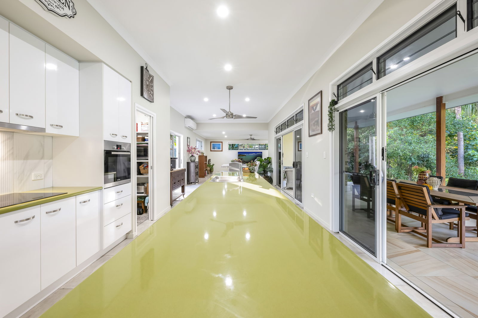 - Sleek kitchen with a large island bench, generous cabinetry, walk-in pantry and electric cooking, all oriented to overlook the serene outdoor setting