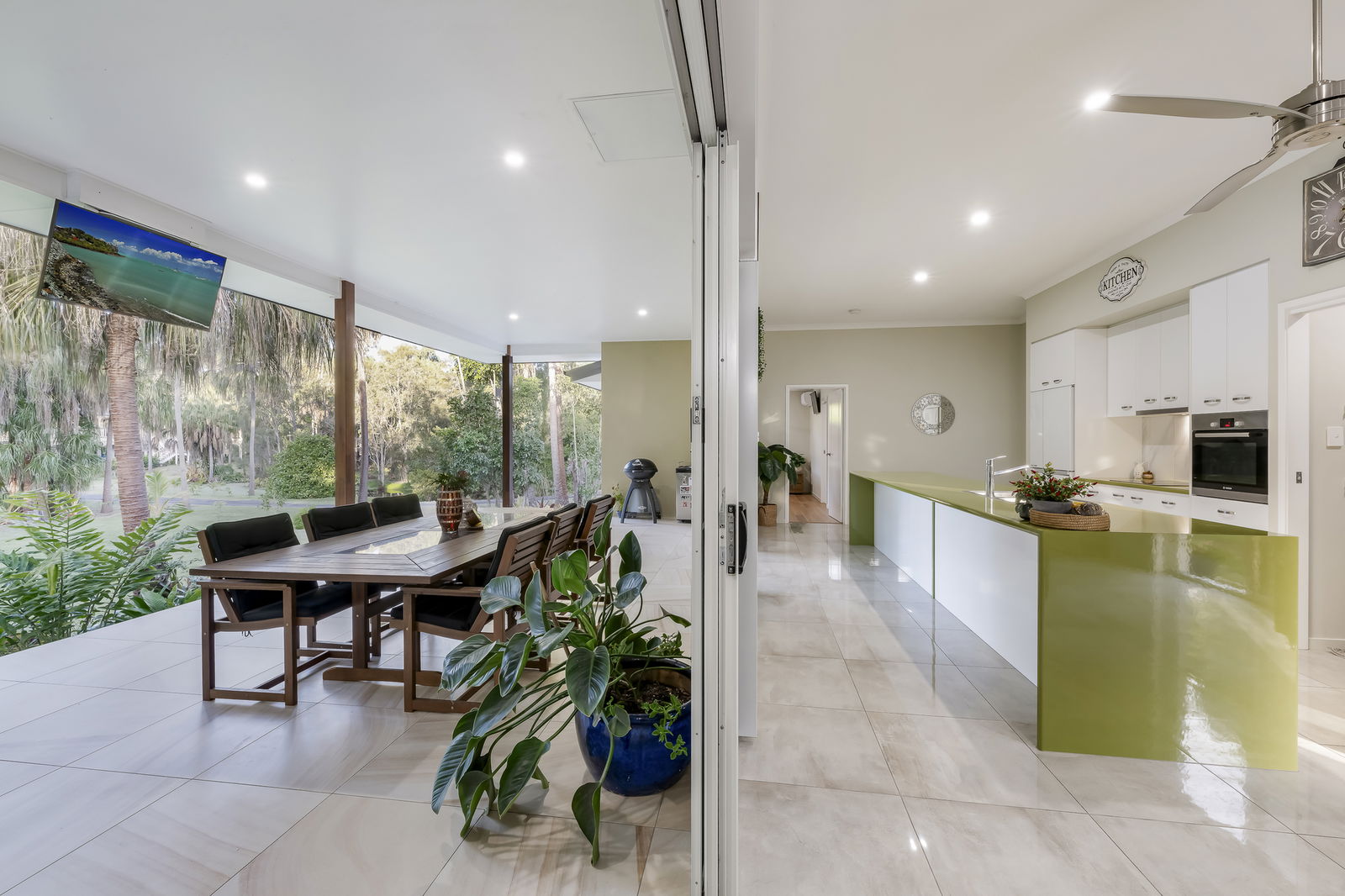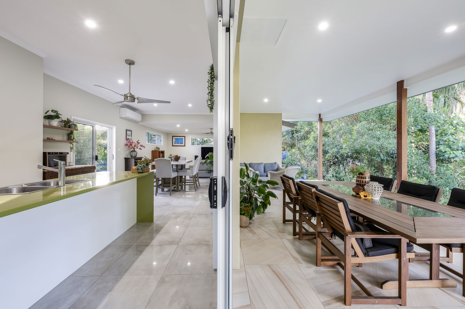 - 12m x 6m undercover entertaining terrace with sandstone-look tiles, framed by picturesque garden outlooks