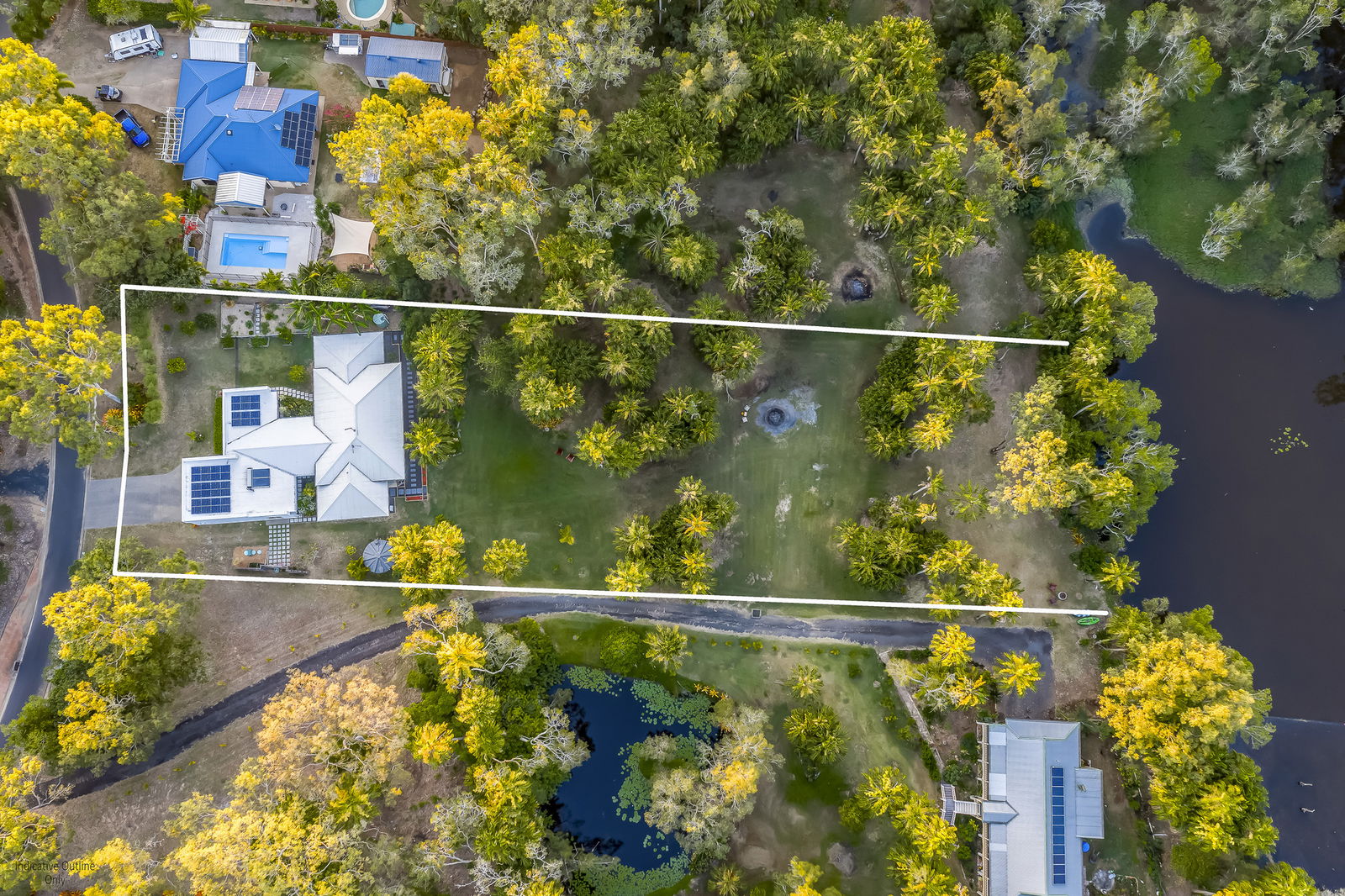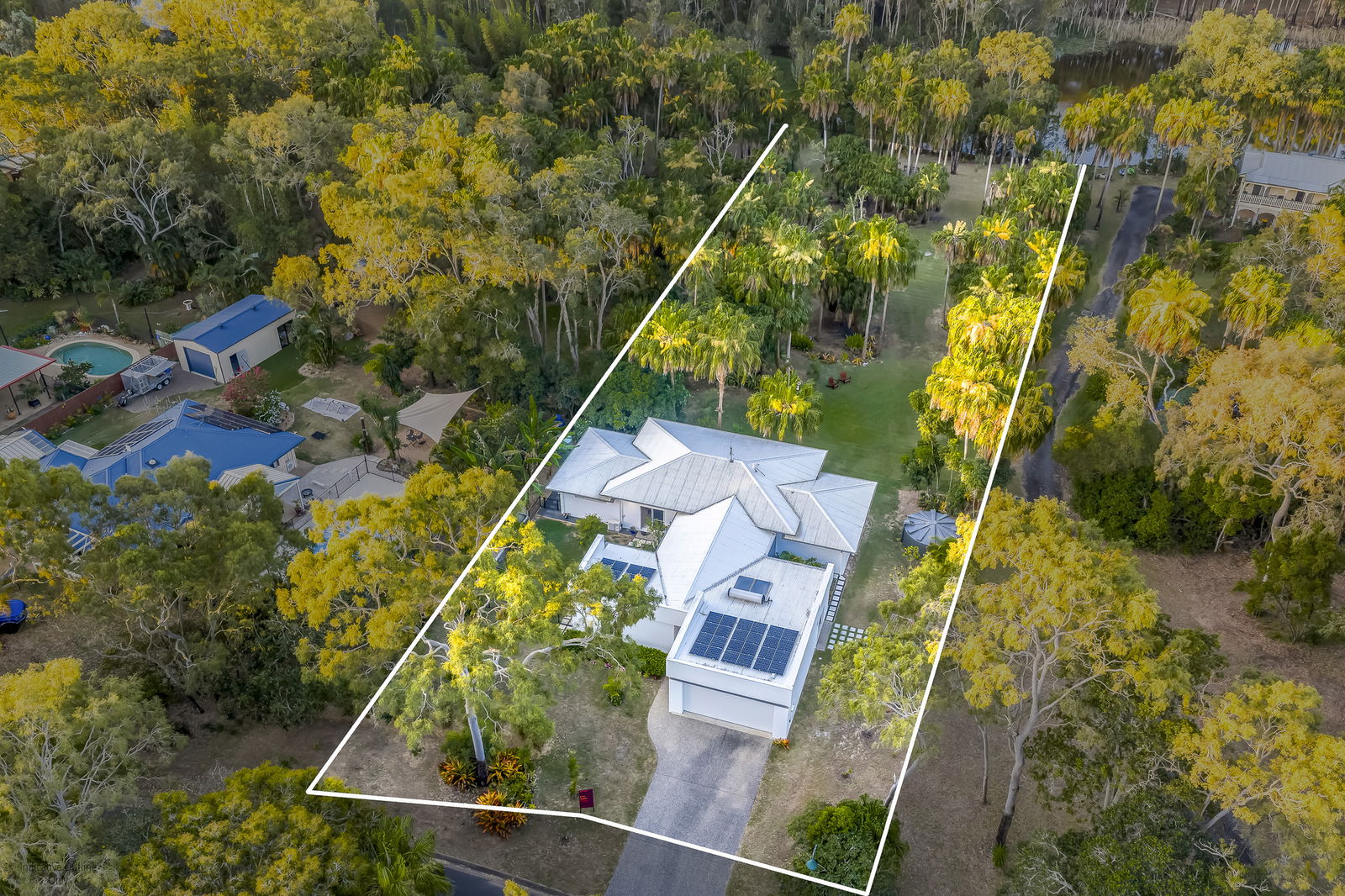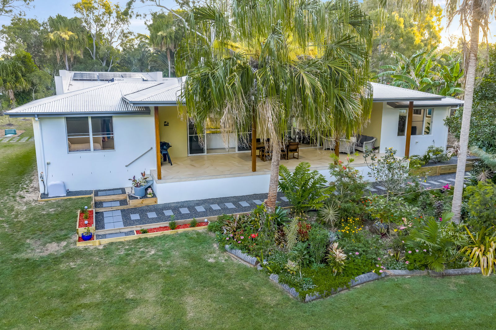 - 3,498m² of landscaped, park-like grounds featuring established tropical gardens, fruit trees, raised vegetable beds, and direct access to a serene wetlands reserve