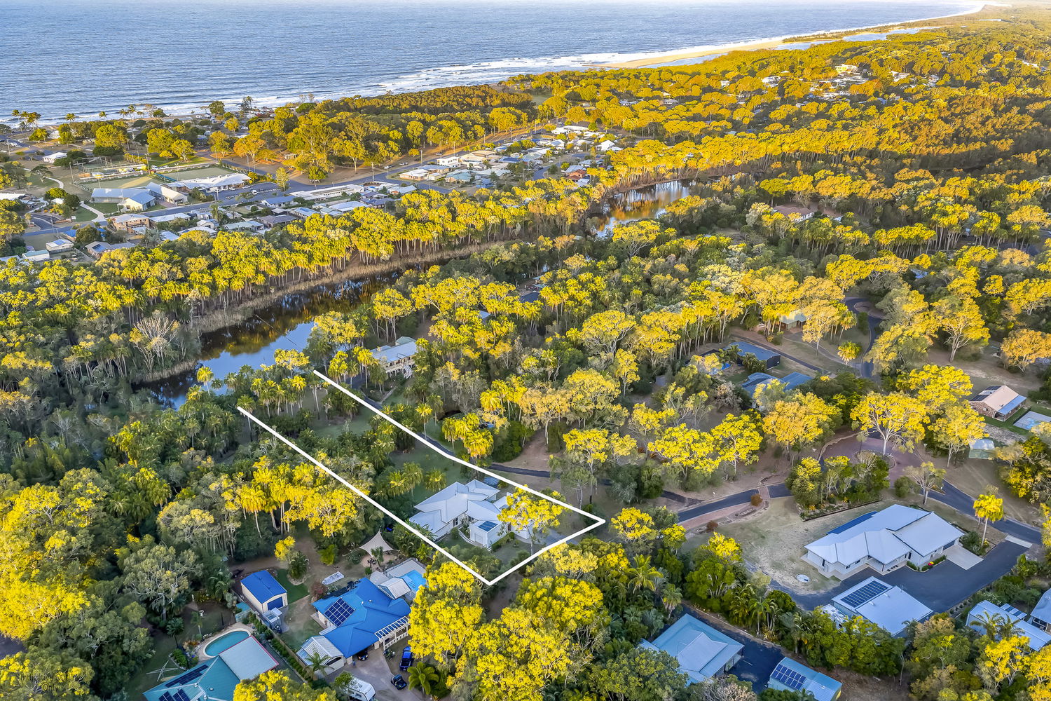 Tucked away on just under an acre, this modern, light-filled residence has been thoughtfully designed to capture natural breezes and leafy views, with a breathtaking backdrop of established trees flowing gently to the lagoon. A rare sanctuary, it combines privacy, understated luxury and coastal lifestyle, all just minutes from the pristine sands of Moore Park Beach.