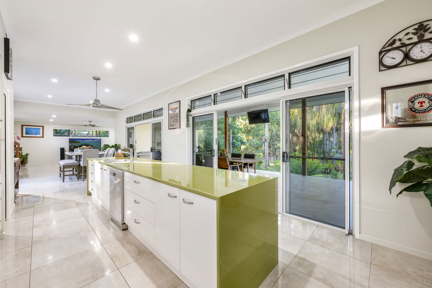 - Sleek kitchen with a large island bench, generous cabinetry, walk-in pantry and electric cooking, all oriented to overlook the serene outdoor setting