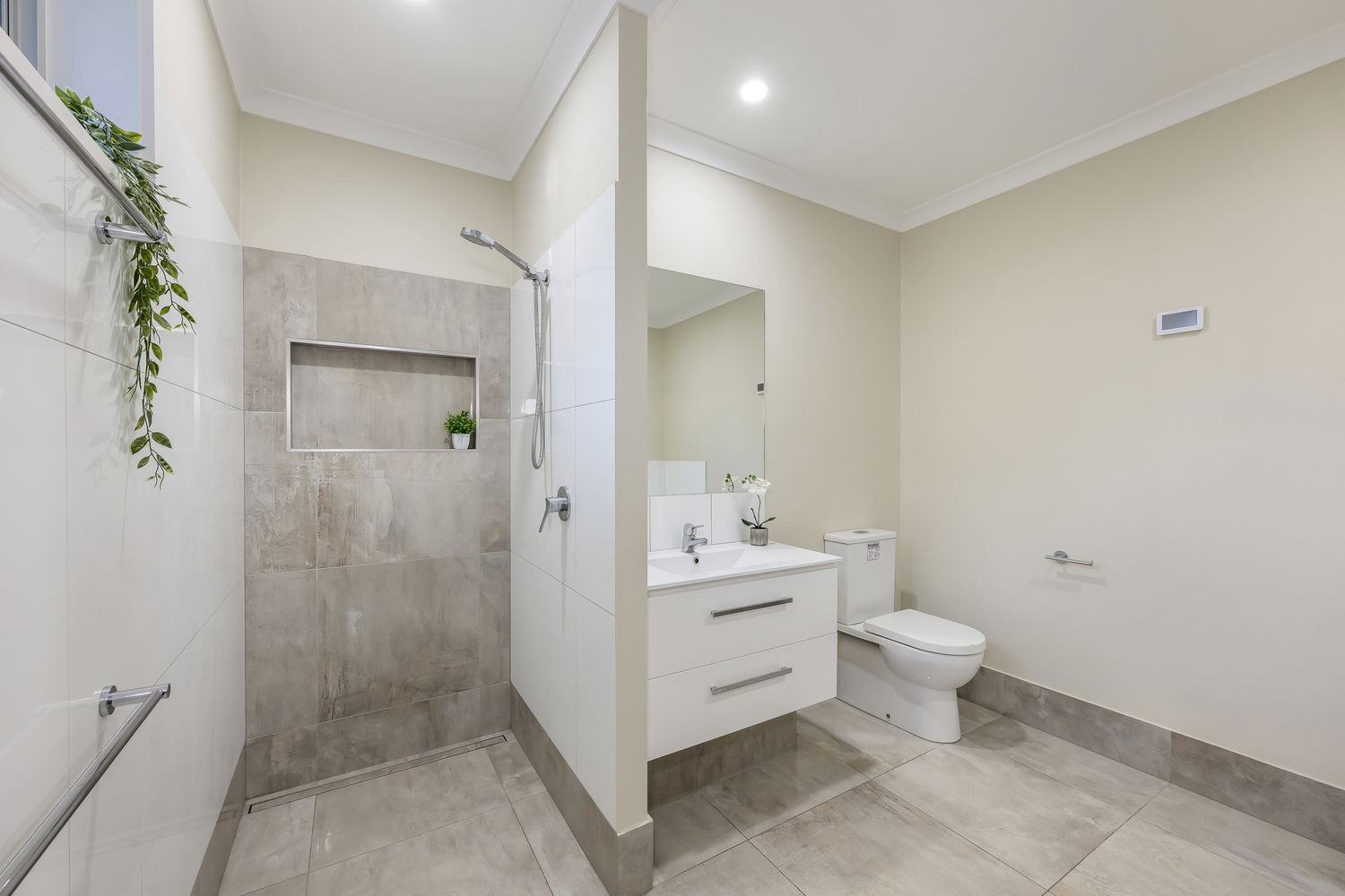 - Three spacious bedrooms, two with expansive three-door wardrobes, and a master suite with a large walk-in robe and private ensuite featuring indulgent heated flooring