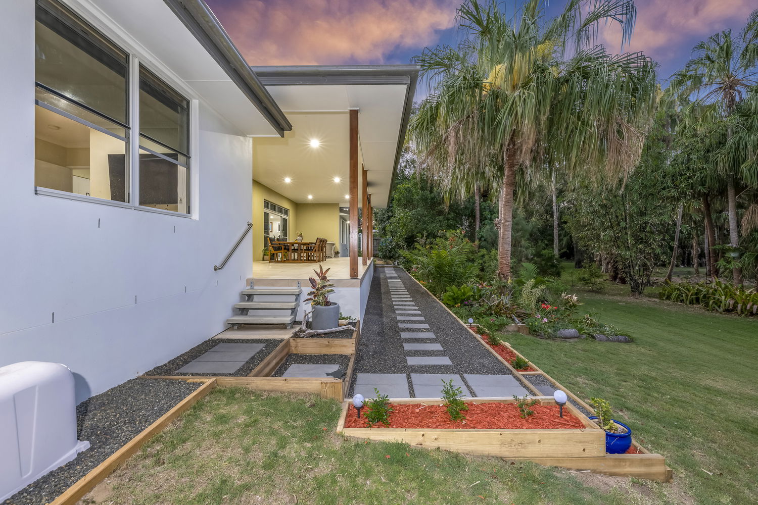 - 3,498m² of landscaped, park-like grounds featuring established tropical gardens, fruit trees, raised vegetable beds, and direct access to a serene wetlands reserve