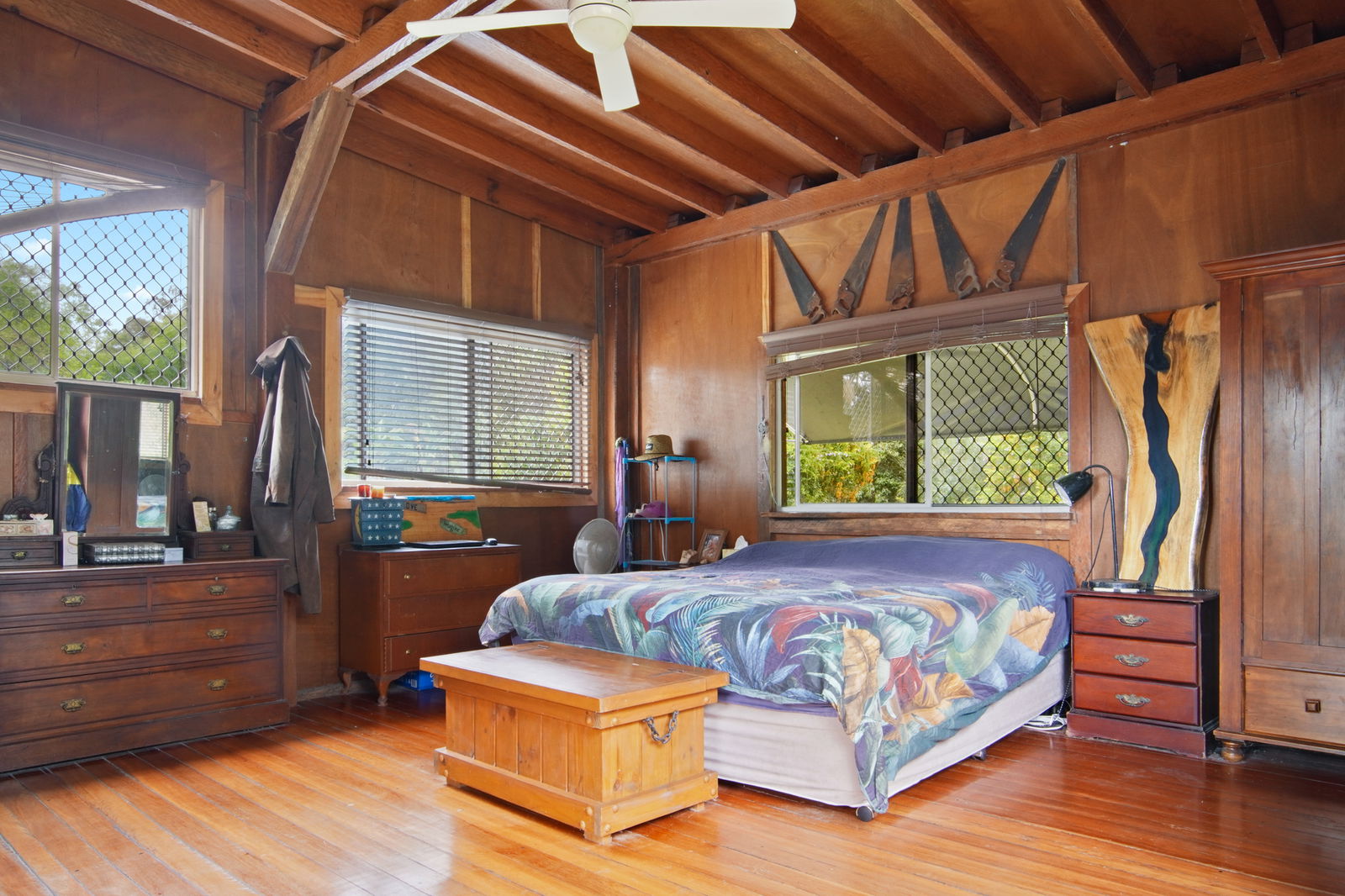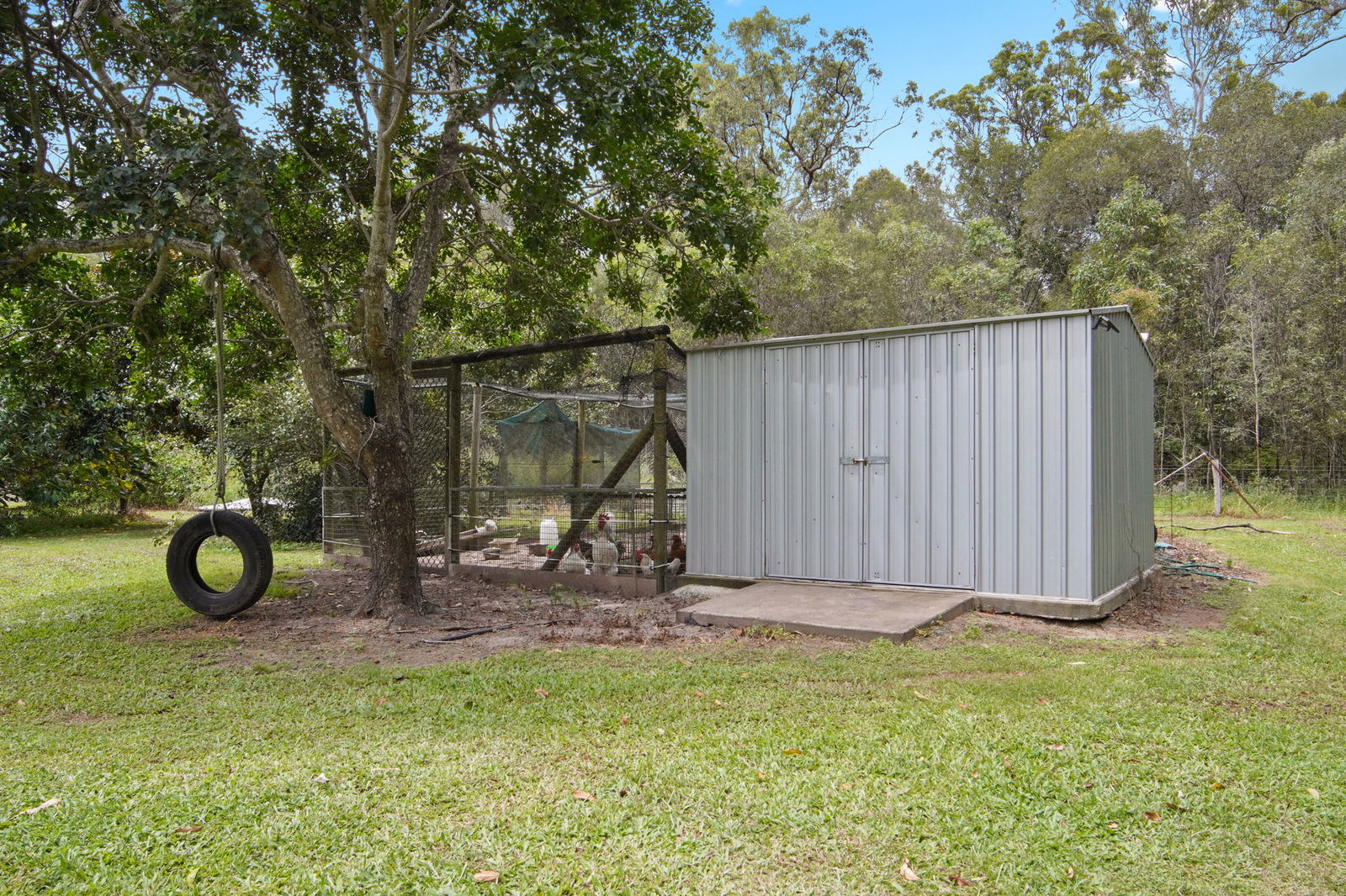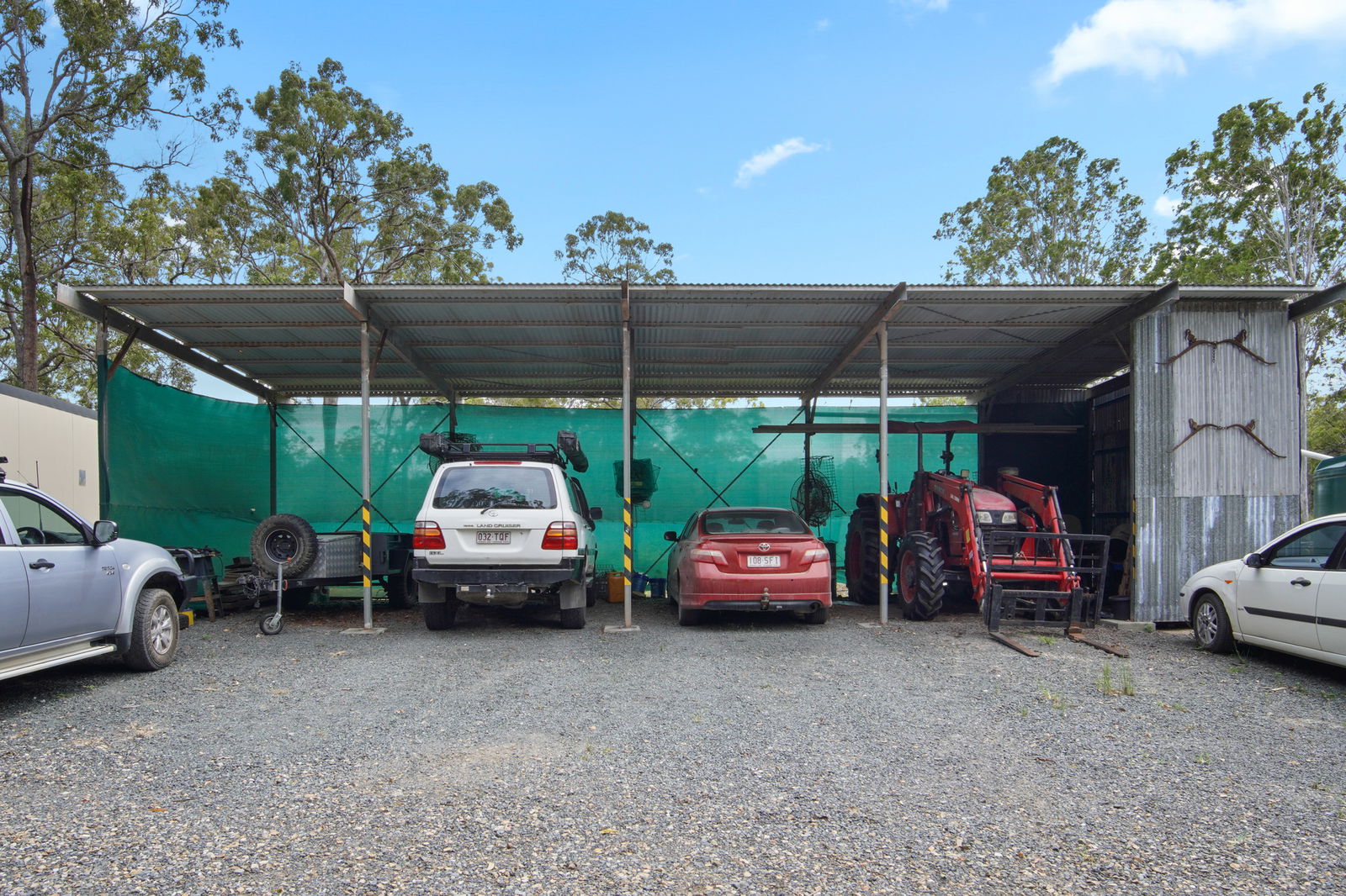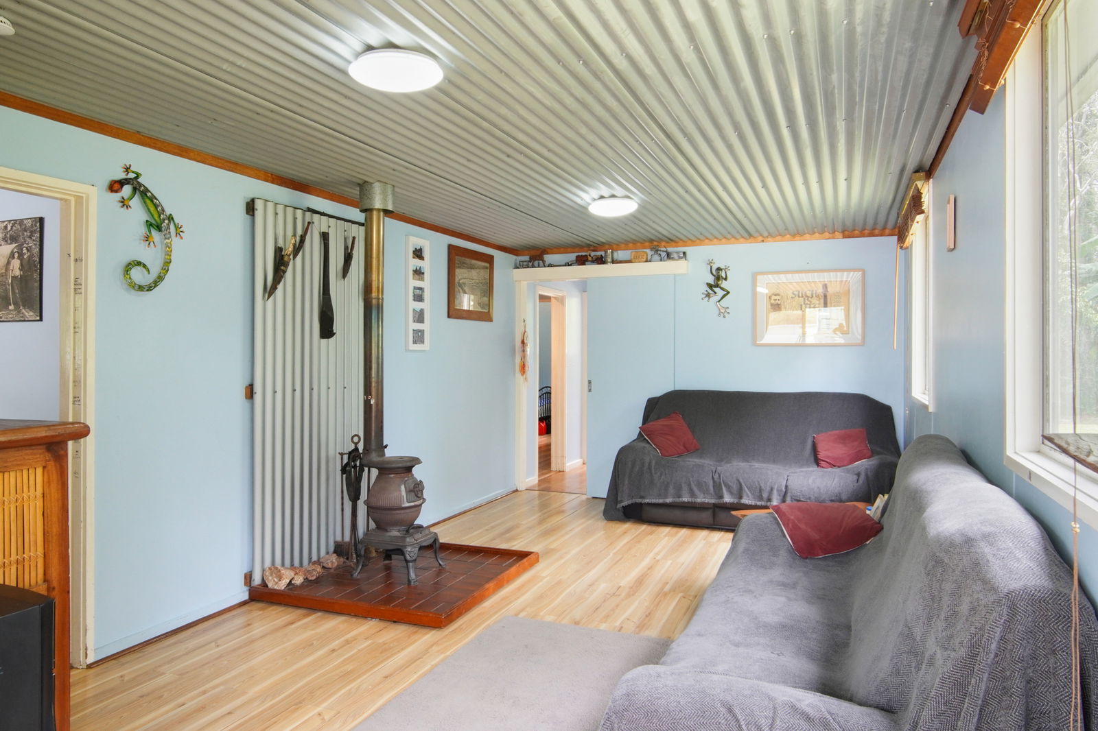 Surrounding the home are established gardens, vegie patches, and over 50 irrigated fruit trees, all supported by a pump from the dam plus approximately 96,000 litres of rainwater storage via four 24,000L tanks. Infrastructure is extensive and practical, including a large chook pen, garden shed, shipping container, medium workshop shed, and a four-bay carport.