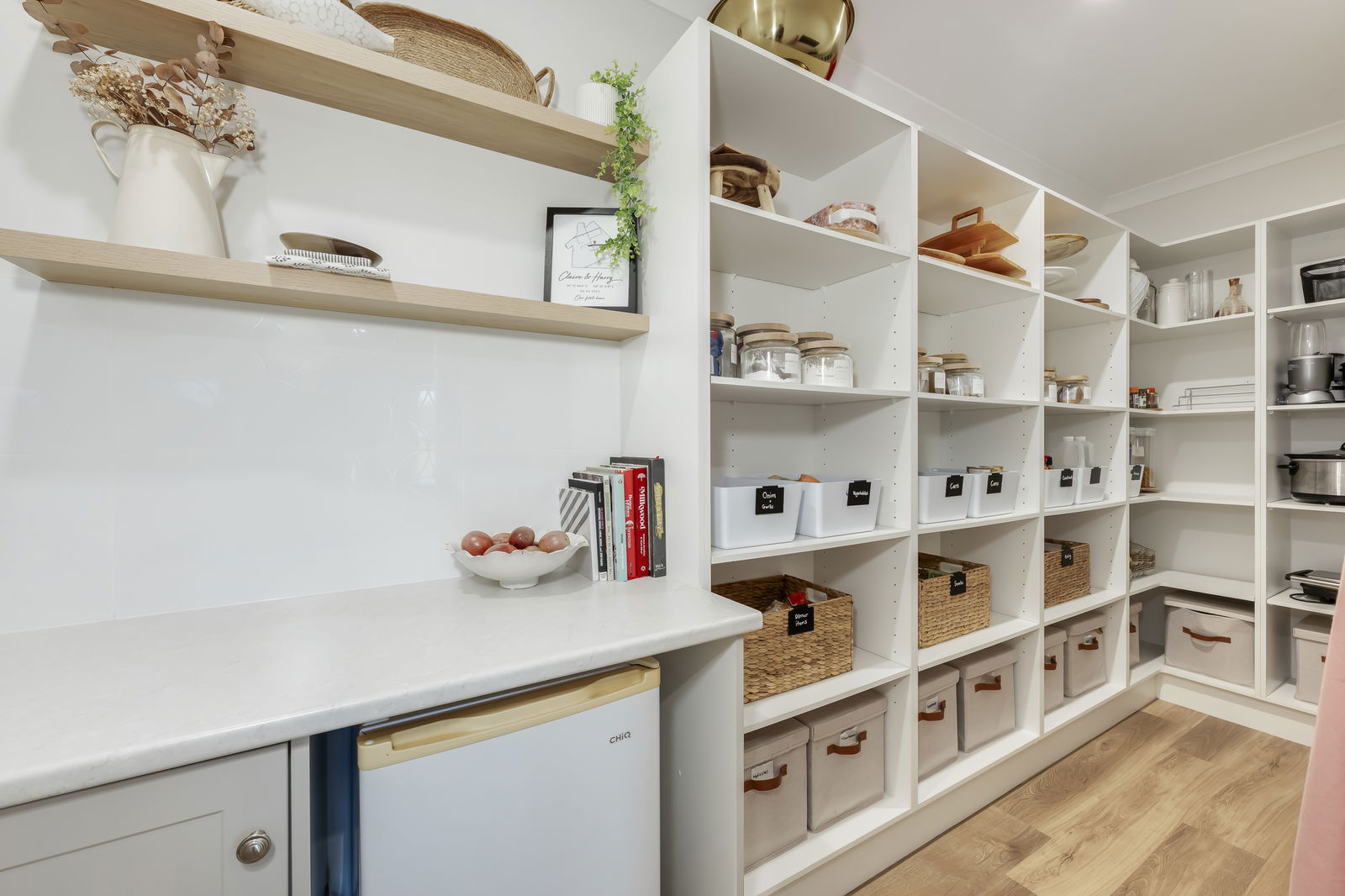 • Butler's pantry with extensive shelving and wine fridge provision
