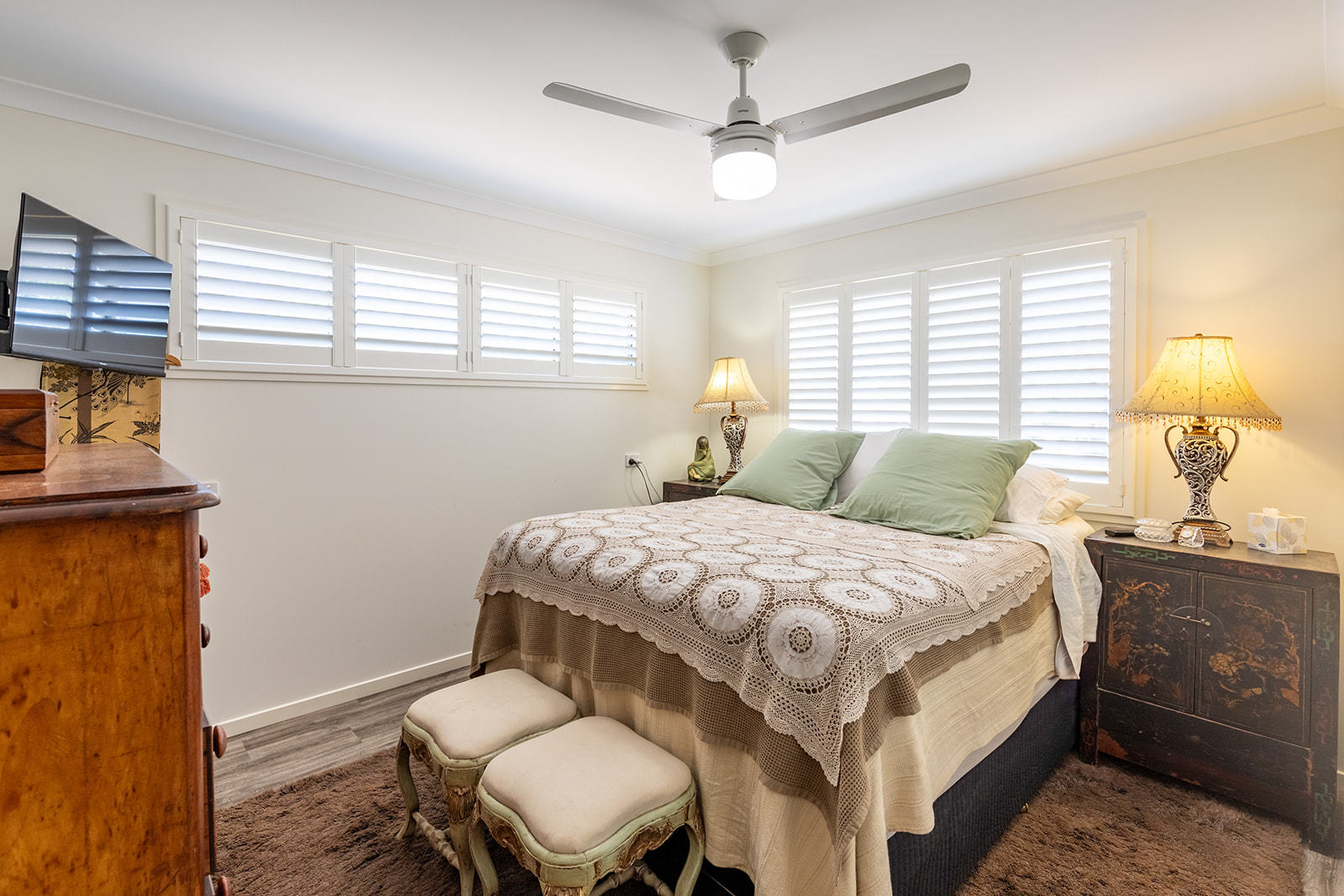 Sunlight fills the north-facing living areas each morning, while plantation shutters add a timeless coastal feel. Outside, the beautifully established gardens create a private, peaceful setting framed by mature pines – a place to enjoy a morning coffee, read a book, or simply enjoy the quiet satisfaction of a home that feels just right.