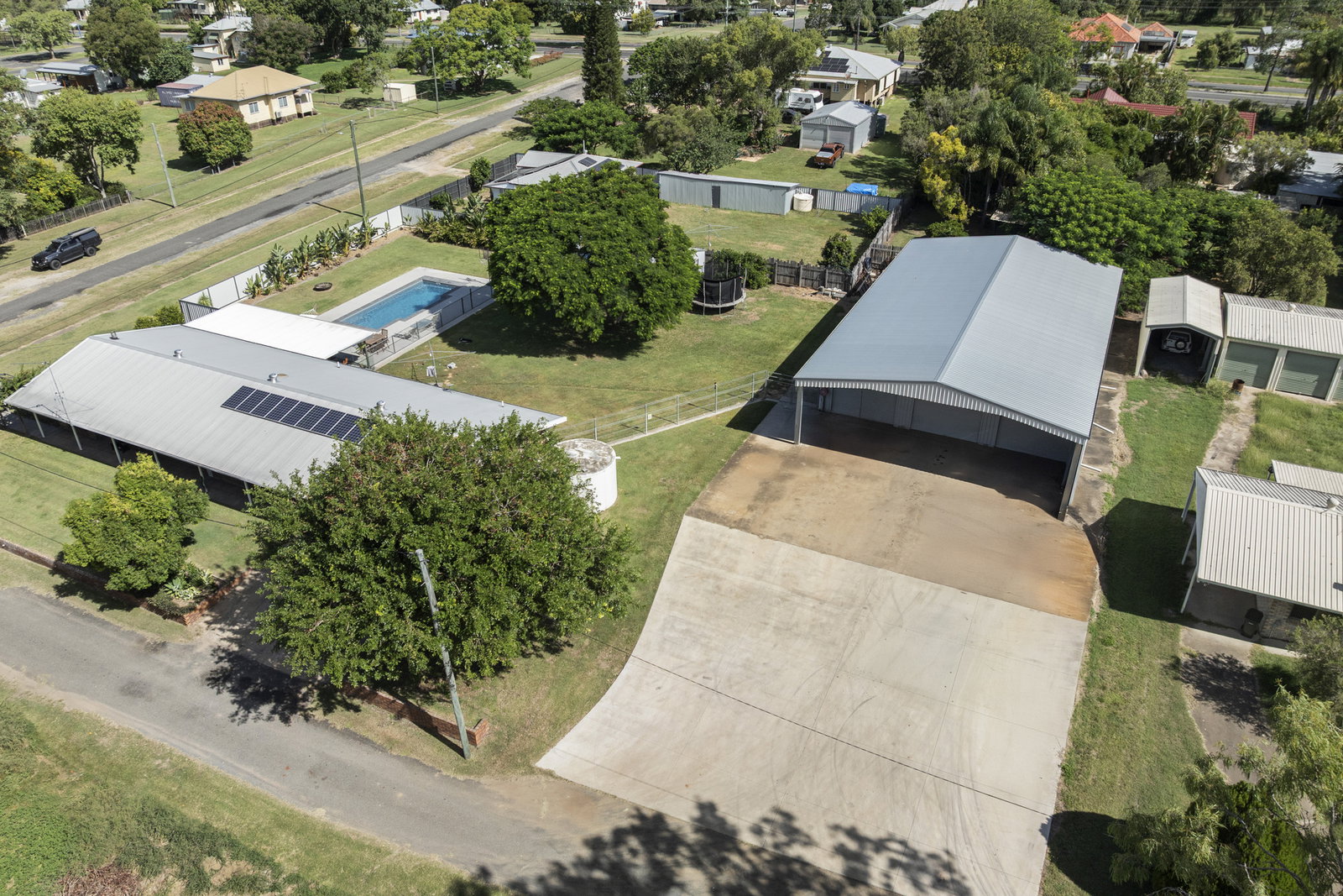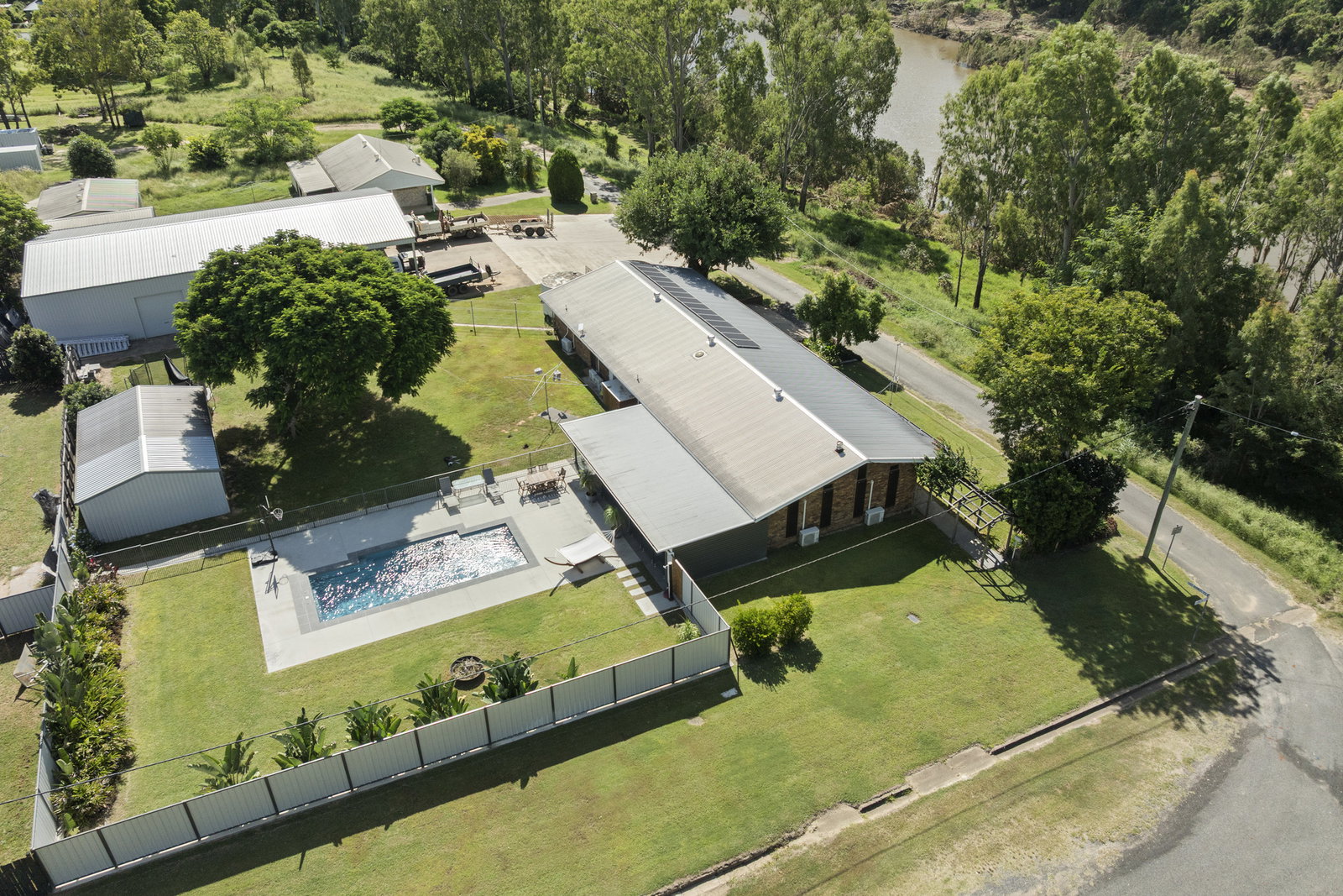 A generationally held family home with Burnett River views, a 26m² main retreat, an outdoor kitchen entertaining area, a self-cleaning pool, powered concrete-floored shedding on a scale rarely seen, and triple water security - all sitting raised and proud on 2,795m² in the heart of Gayndah. 2 Downing Street is the kind of property a family holds onto for decades. The fact that it's available at all is reason enough to move quickly.
