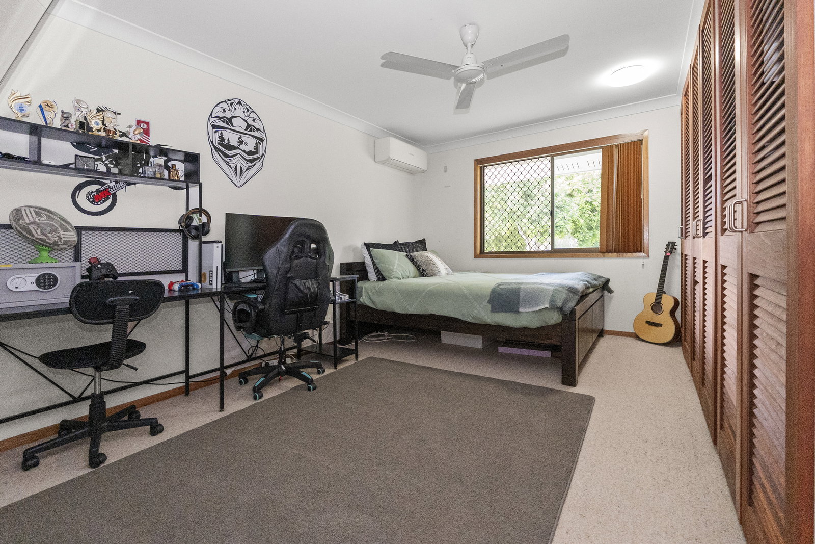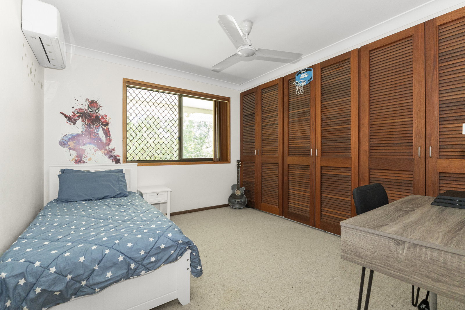 * Carpeted main bedroom presented as a generous 26m² parents' retreat - one of the newest additions to the home, complete with a walk-in robe, air-conditioning and a private ensuite that feels fresh, considered, and entirely removed from the rest of the house