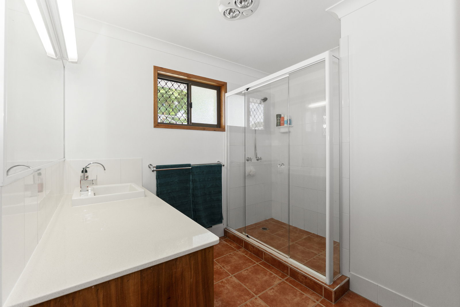 * Main bathroom with standalone shower, and single vanity unit with stone benchtop, built-in linen cupboard and seperate toilet servicing the remaining bedrooms comfortably
