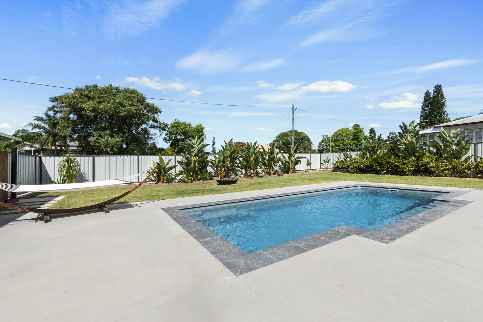 * Magnesium self-cleaning fibreglass pool safely enclosed within its own fully fenced pool area - low maintenance and ready to enjoy from day one