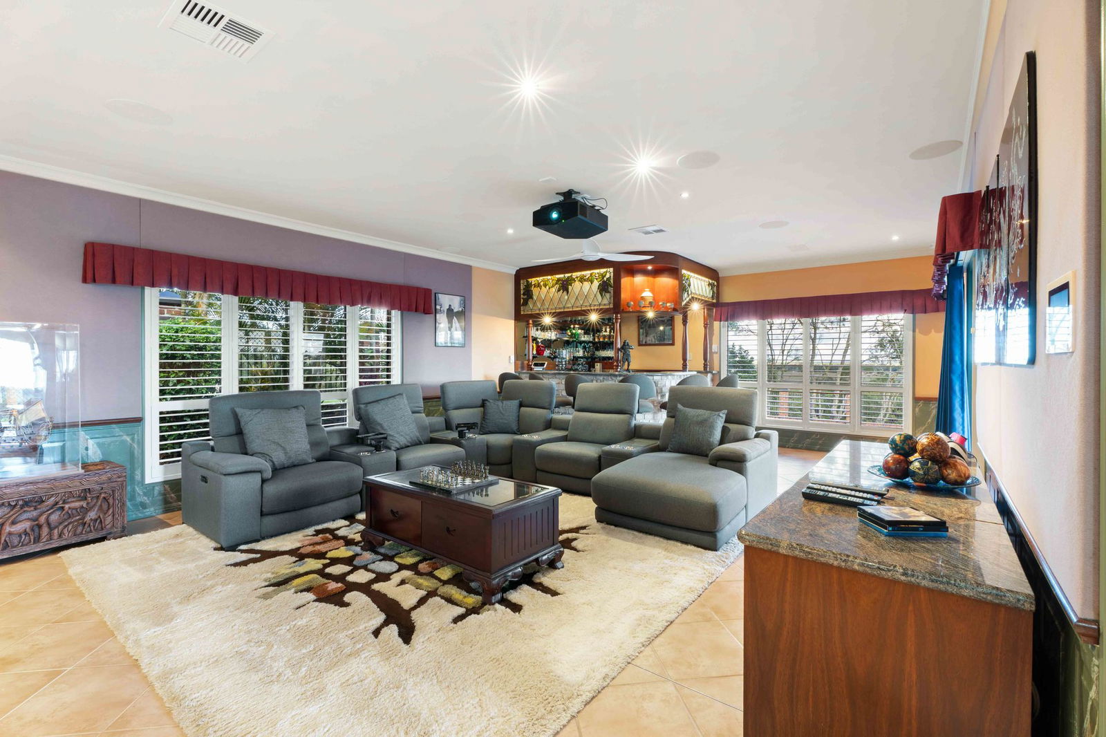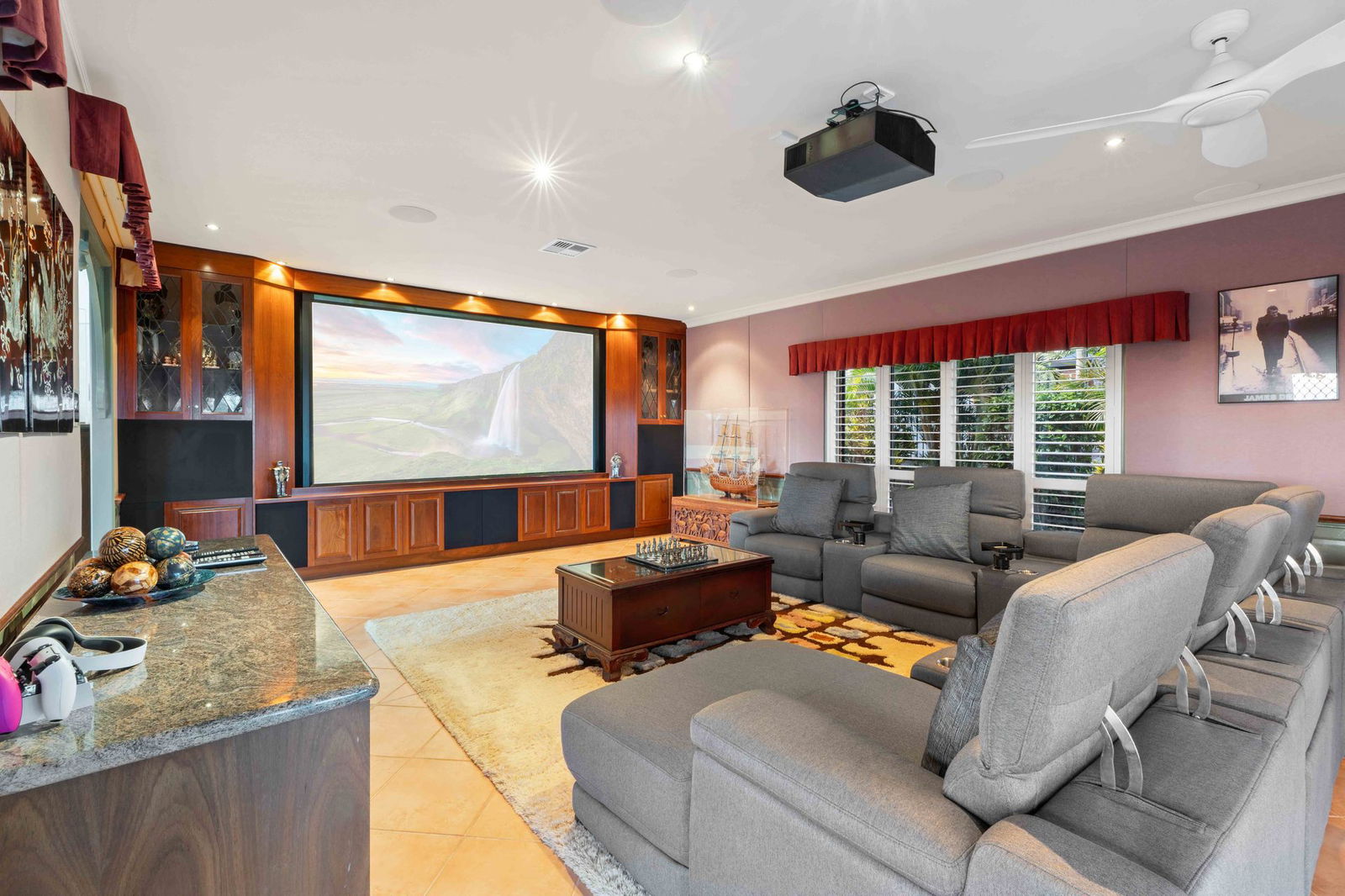 Dedicated Theatre Room with projector, surround sound, cabinetry, bar, and luxury finishes (over $100K invested).