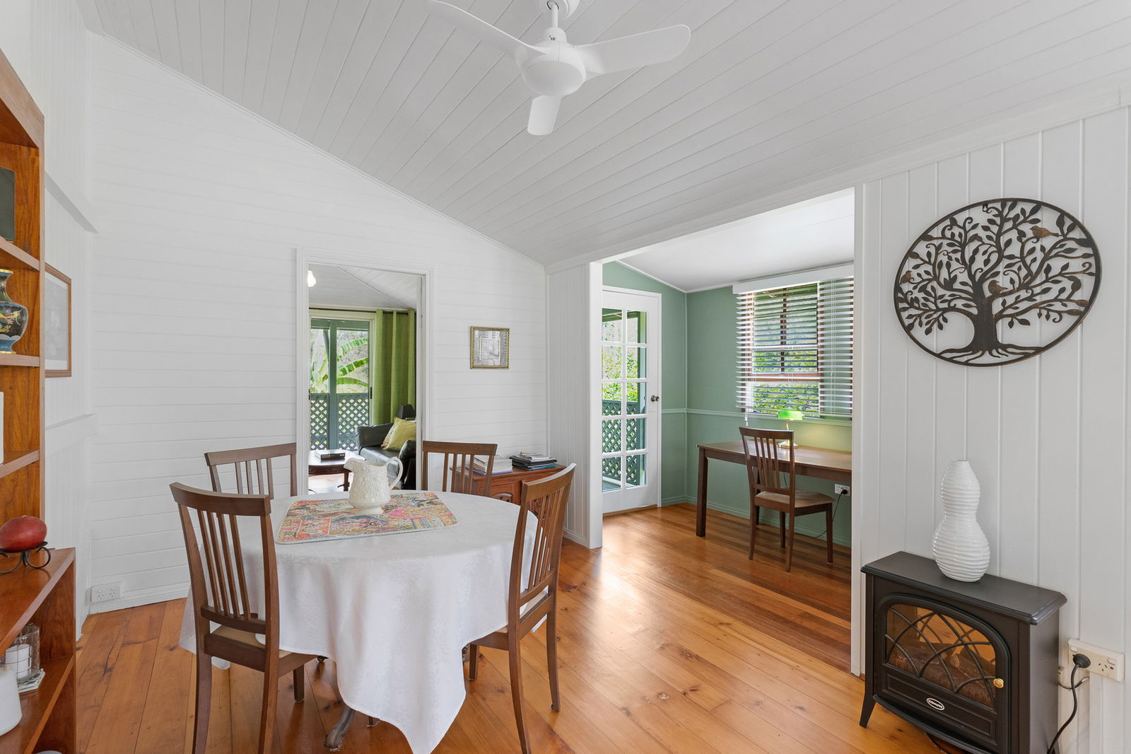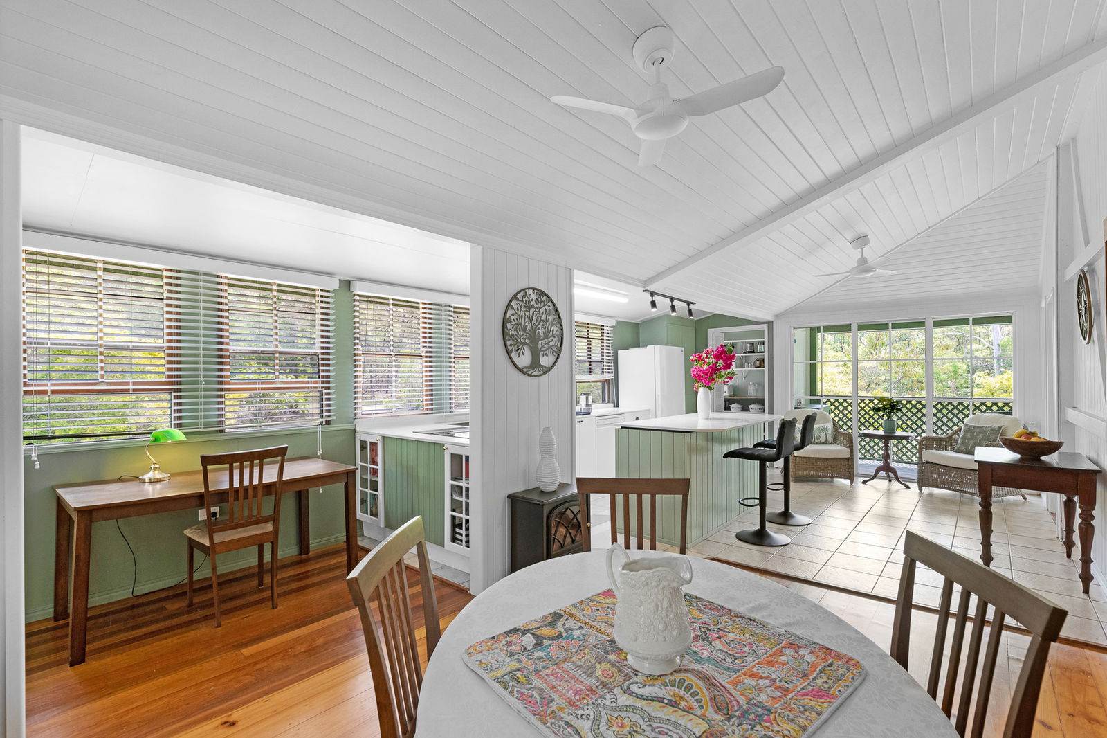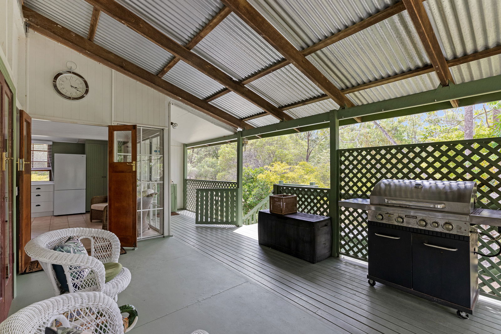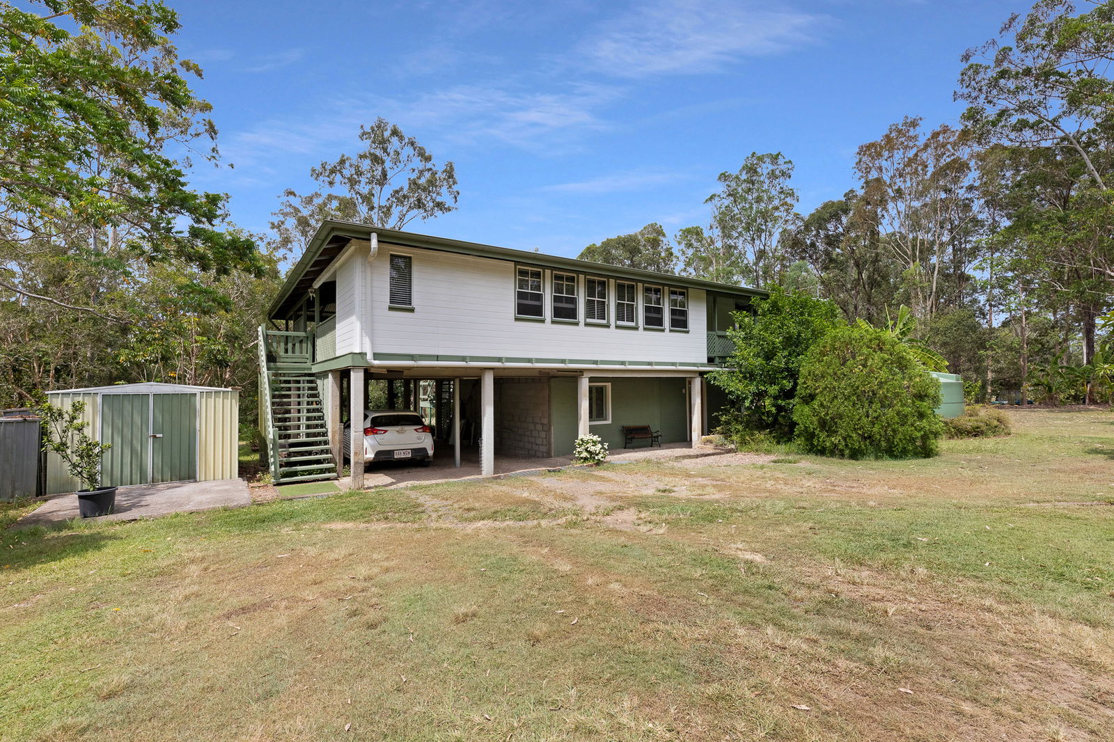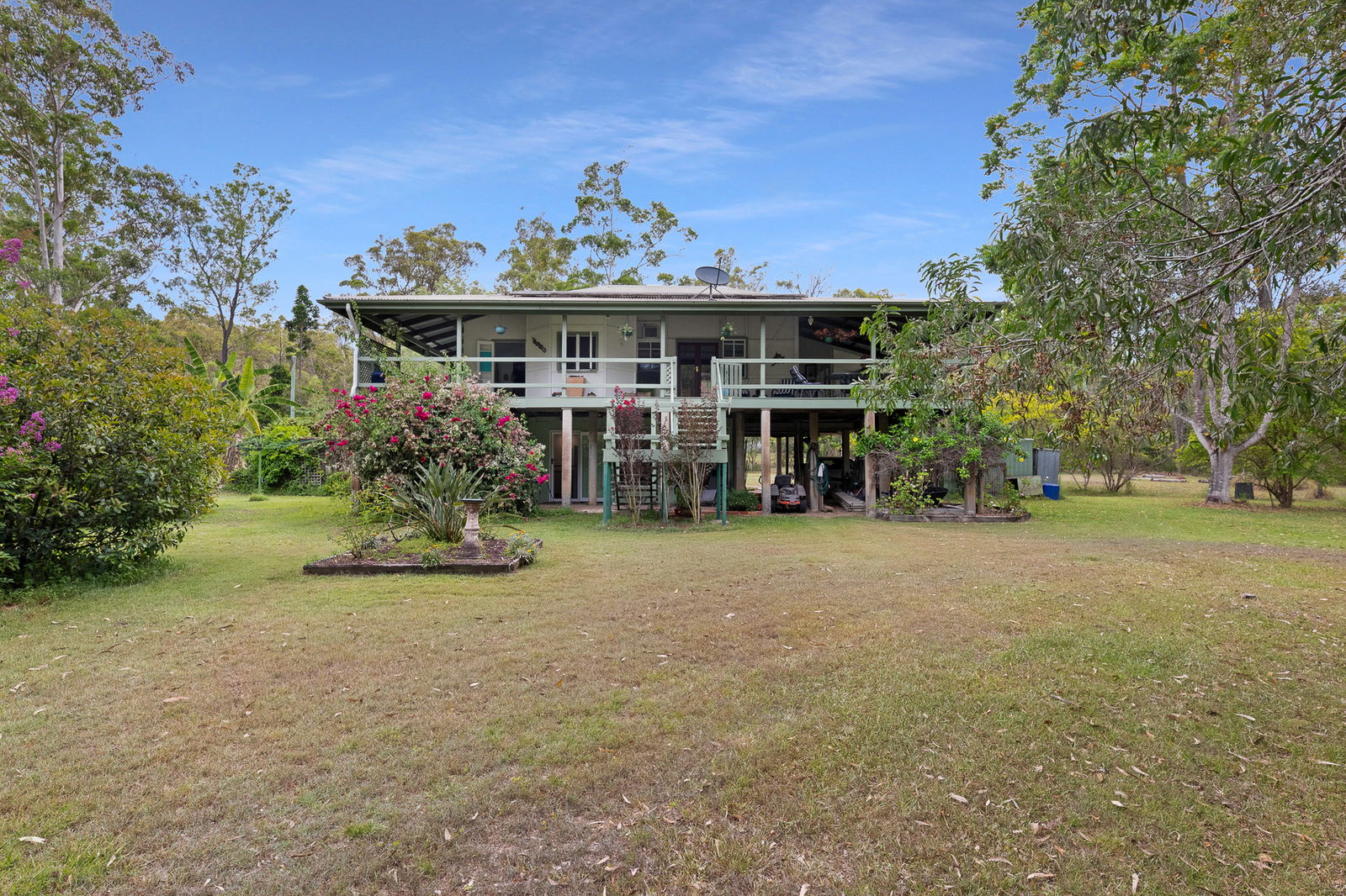 Nestled down a private drive and overlooking a meandering creek midway on a 5 acre property of established gardens and wildlife habitats lies this cleverly positioned and renovated Queenslander.