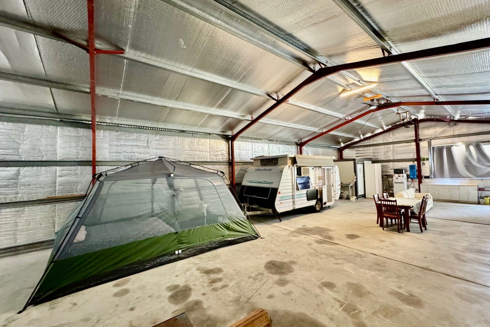 The space has been thoughtfully set up for relaxed weekends or longer stays, with a camping kitchen, indoor/outdoor speaker system, and eco-friendly composting toilet for guests. An additional 6m x 6m (approx.) machinery shed provides extra storage for your boat, caravan, or tractor.