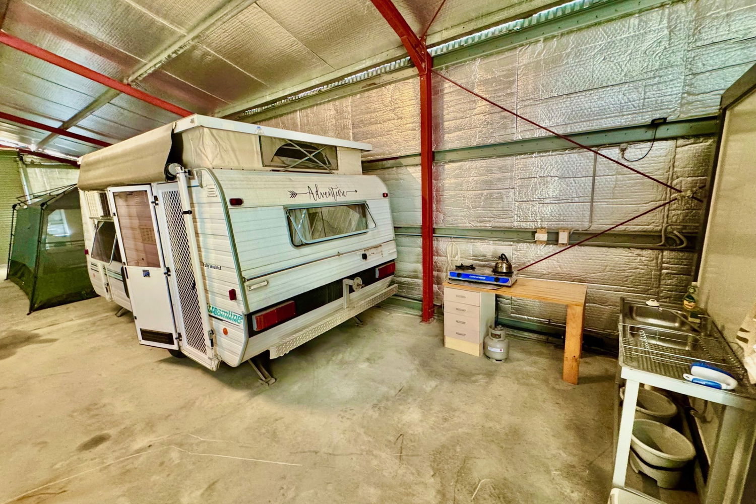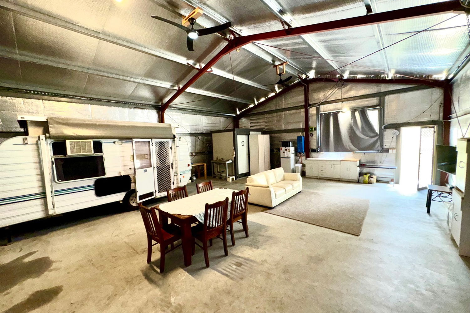 The space has been thoughtfully set up for relaxed weekends or longer stays, with a camping kitchen, indoor/outdoor speaker system, and eco-friendly composting toilet for guests. An additional 6m x 6m (approx.) machinery shed provides extra storage for your boat, caravan, or tractor.