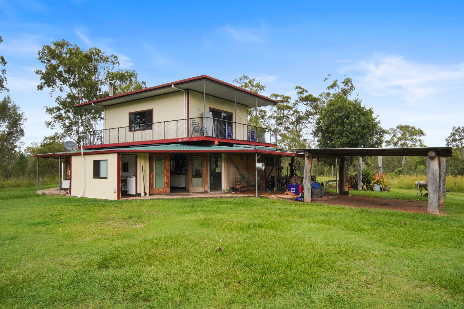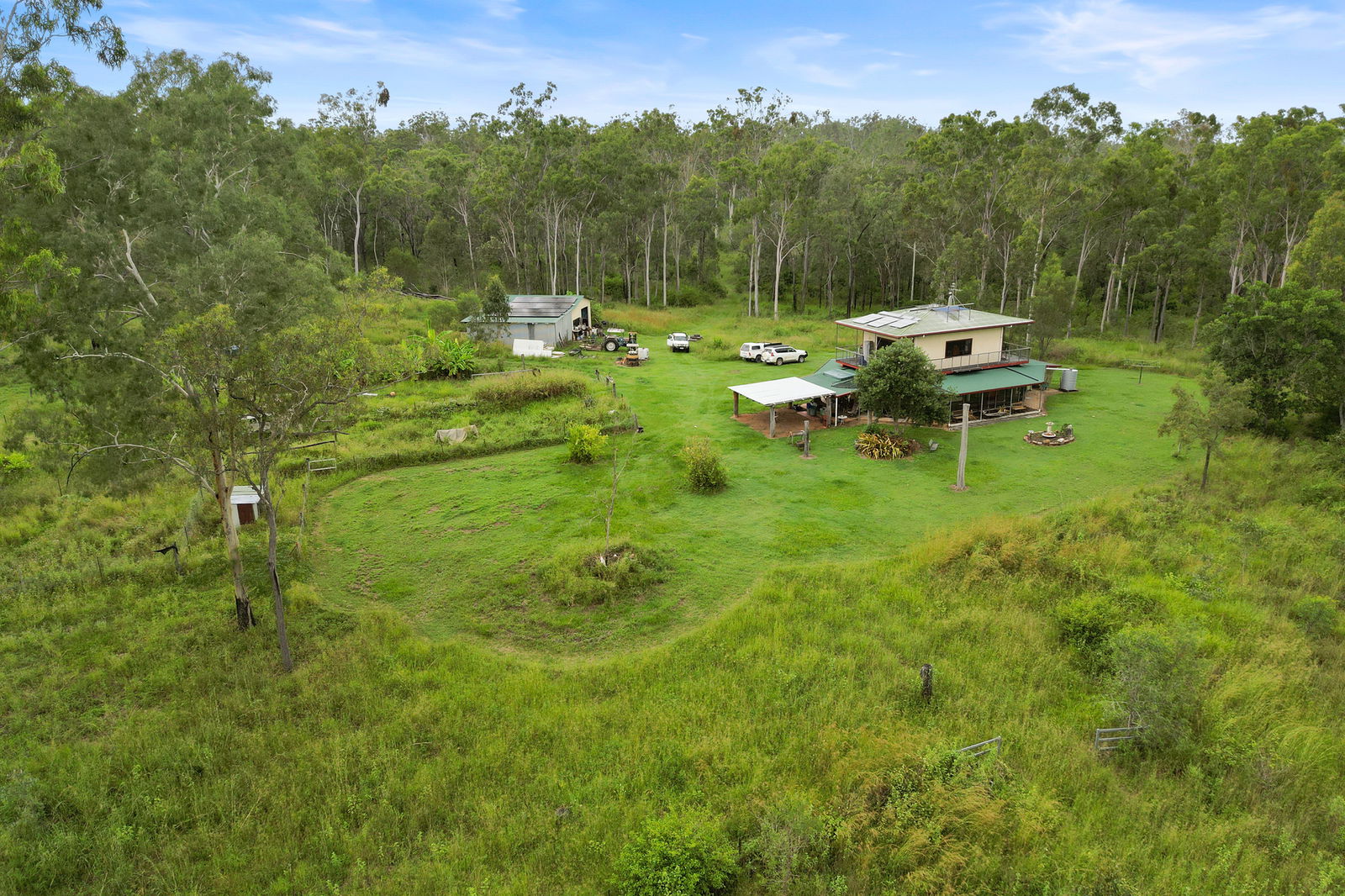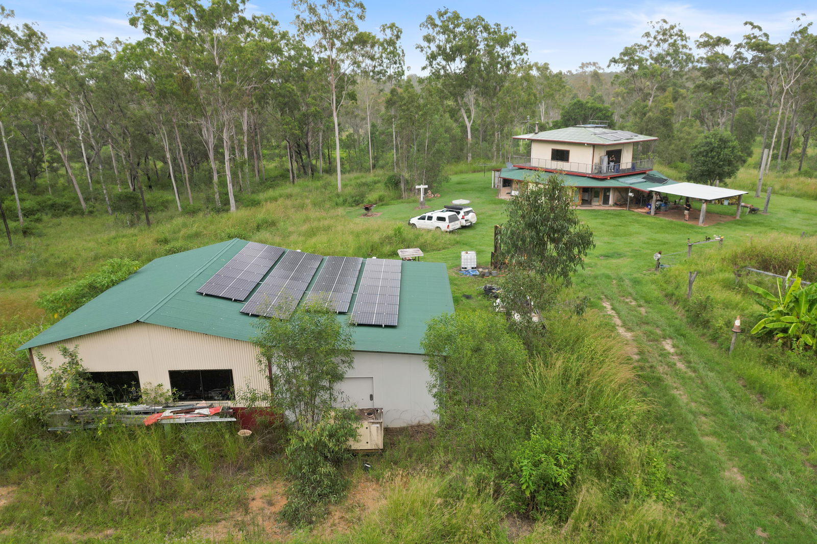 Infrastructure is practical and suited to rural use. There is a large shed plus a separate machinery shed that houses a tractor and provides additional storage. Water is supplied via a bore with solar pump, and there is also a dam on the property. The land is partially fenced.
