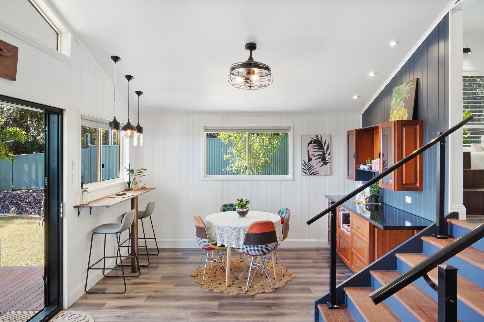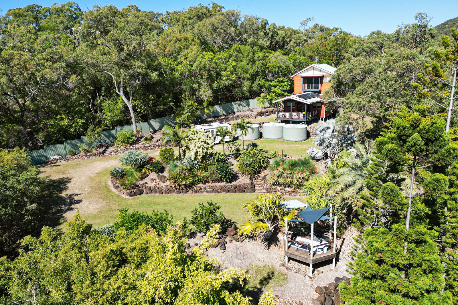 The jewel of the property rests at its apex, a Newly finished, tri-level, western red ceder home. Its Interiors reflect a Hampton/Industrial/Vintage Relaxed Styling. Boasting cool breezes and, amazing blue ocean views across Bustard Bay, the estuary in 1770, and the mountain ranges to the southwest. The views extend all the way to Bustard Head Lighthouse and provide a stunning backdrop for everyday living or entertaining.
