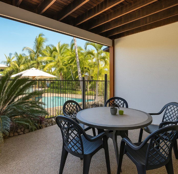 Inside, the home is designed for comfort and flexibility, featuring **two spacious bedrooms and two bathrooms**, perfect for families, couples, or investors. The open-plan living flows to a private patio overlooking the pool, while upstairs offers a breezy balcony to soak up the views.
