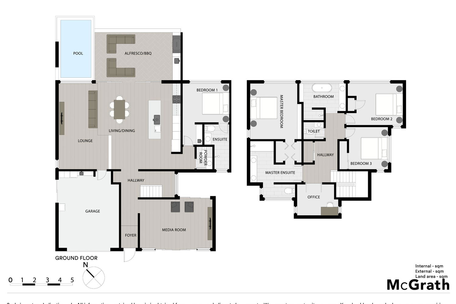 Offering comfortable accommodation for up to eight guests, the master suite, two additional bedrooms, main bathroom and study occupy the entire first floor, while a separate, private guest wing on the ground level provides an ideal sanctuary for visiting family or friends.