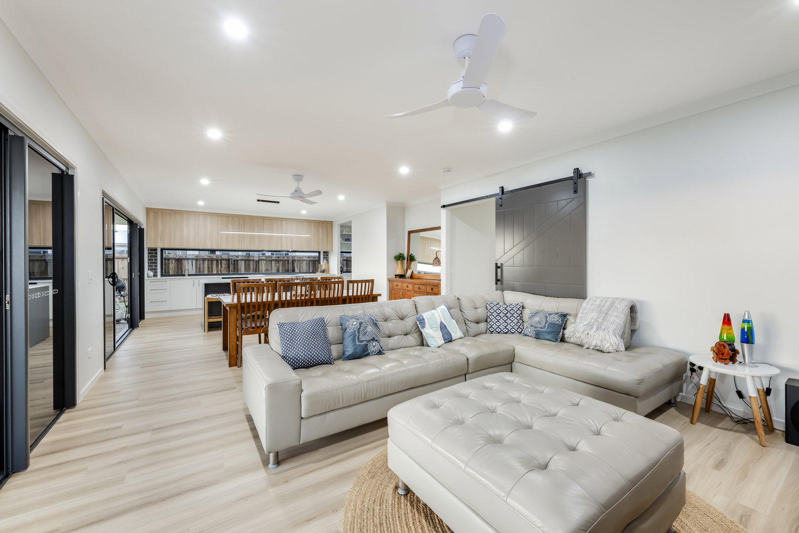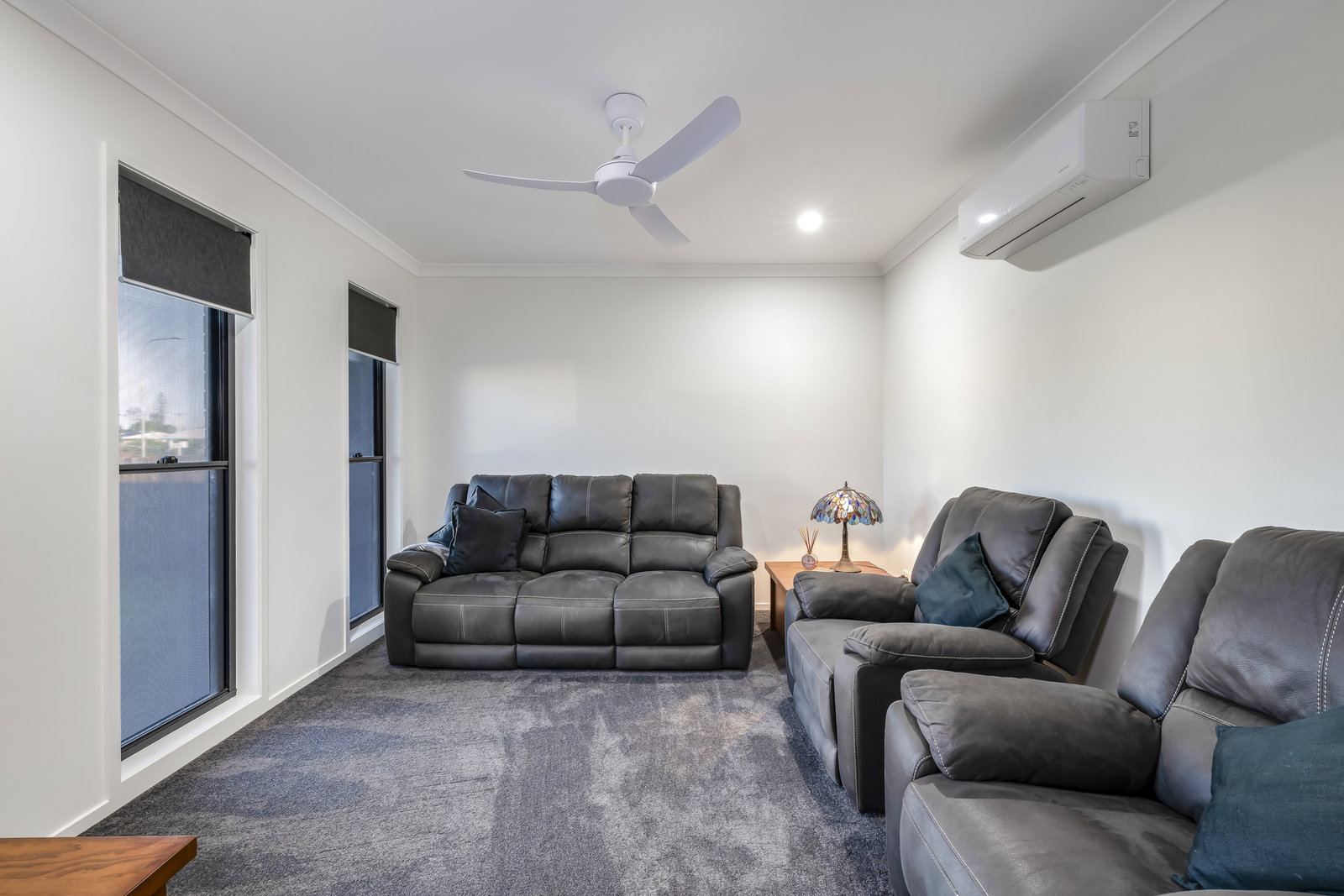 • Timber-look flooring in living areas & plush carpeted media room