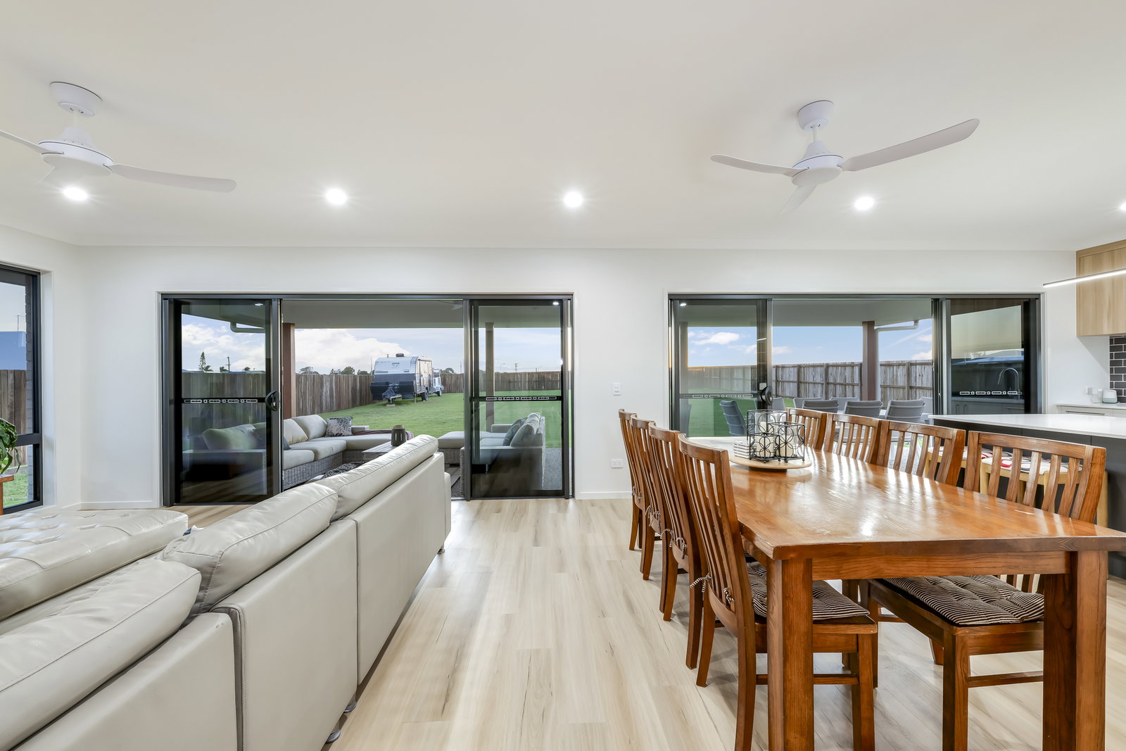 • Bedrooms 2 & 3 with built-ins, ceiling fans & timber-look flooring