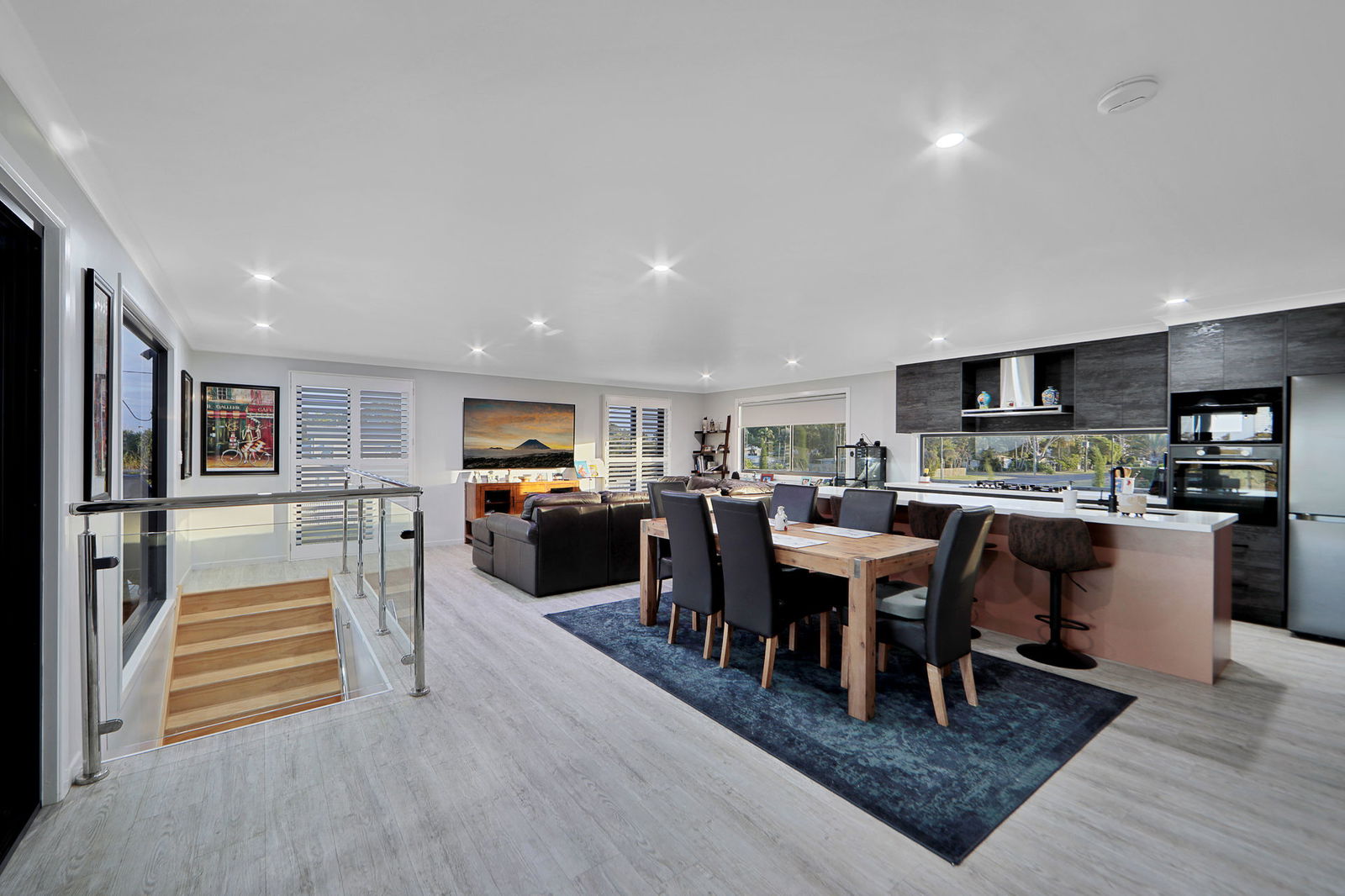Set on a generous 1,676sqm block, this eight-year-old home is thoughtfully designed across two levels to suit families, entertainers, or those seeking dual-living potential. Upstairs, the light-filled open plan living and dining area captures cooling sea breezes and sweeping river-to-ocean views, flowing seamlessly to a large timber deck-perfect for entertaining or relaxing.