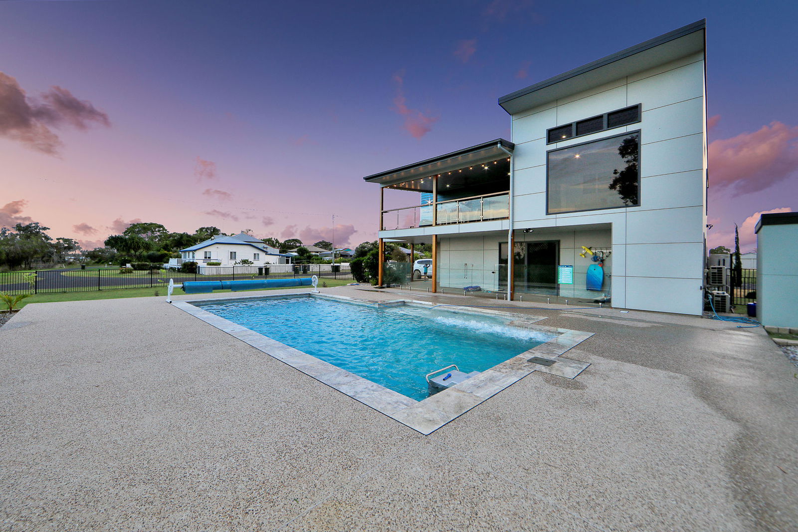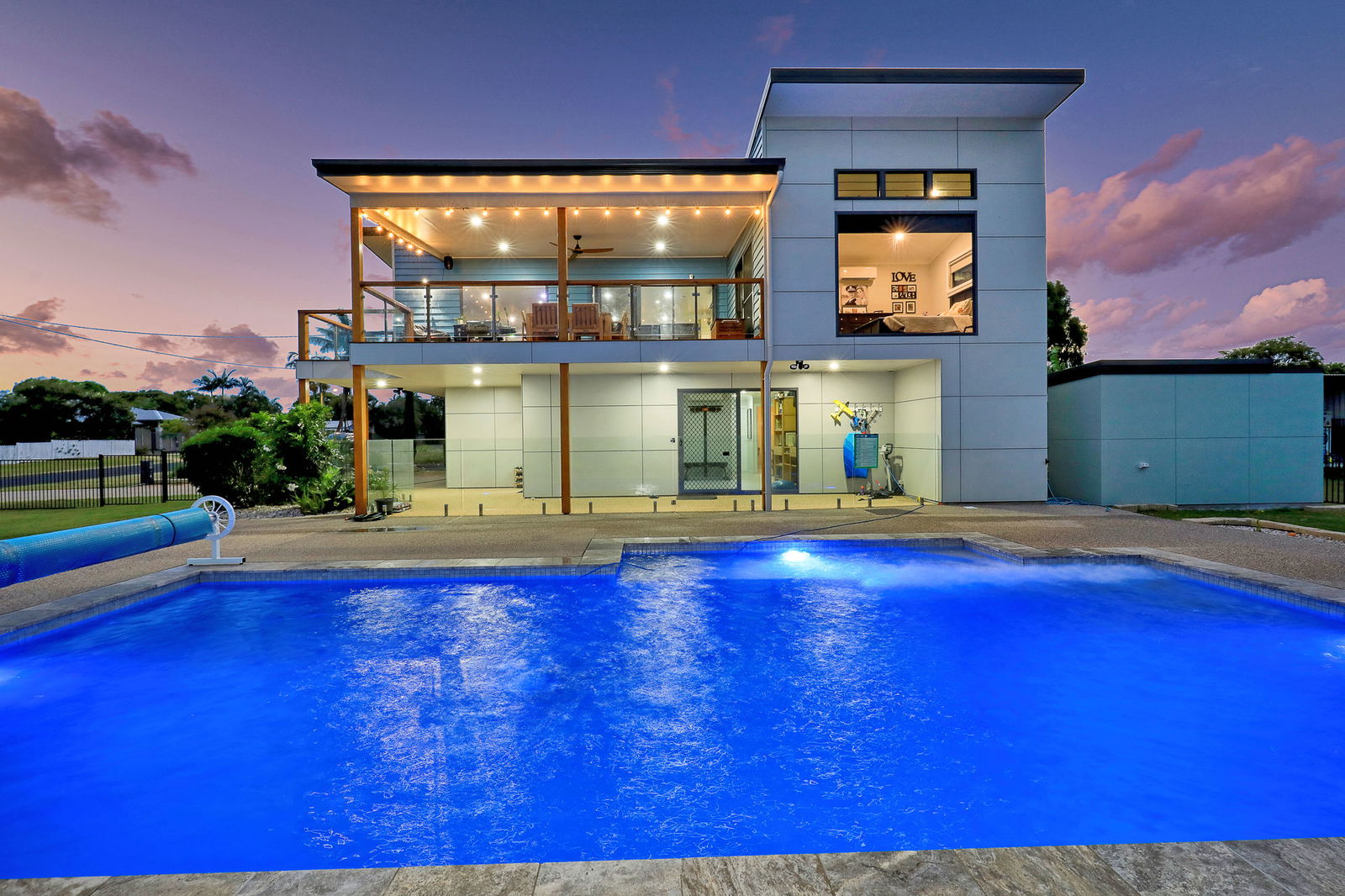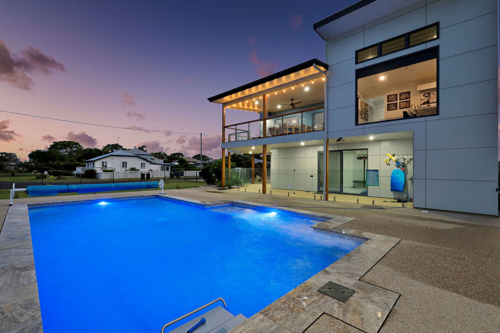 • 9.5m x 4.5m inground pool with swim jets, heating & cooling