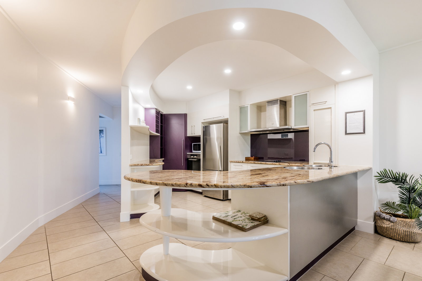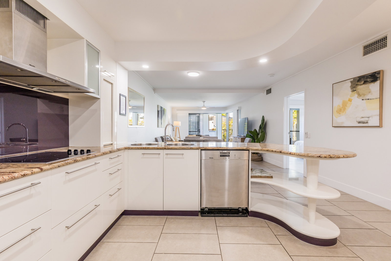 -Modern kitchen complete with stone benchtops and ample storage