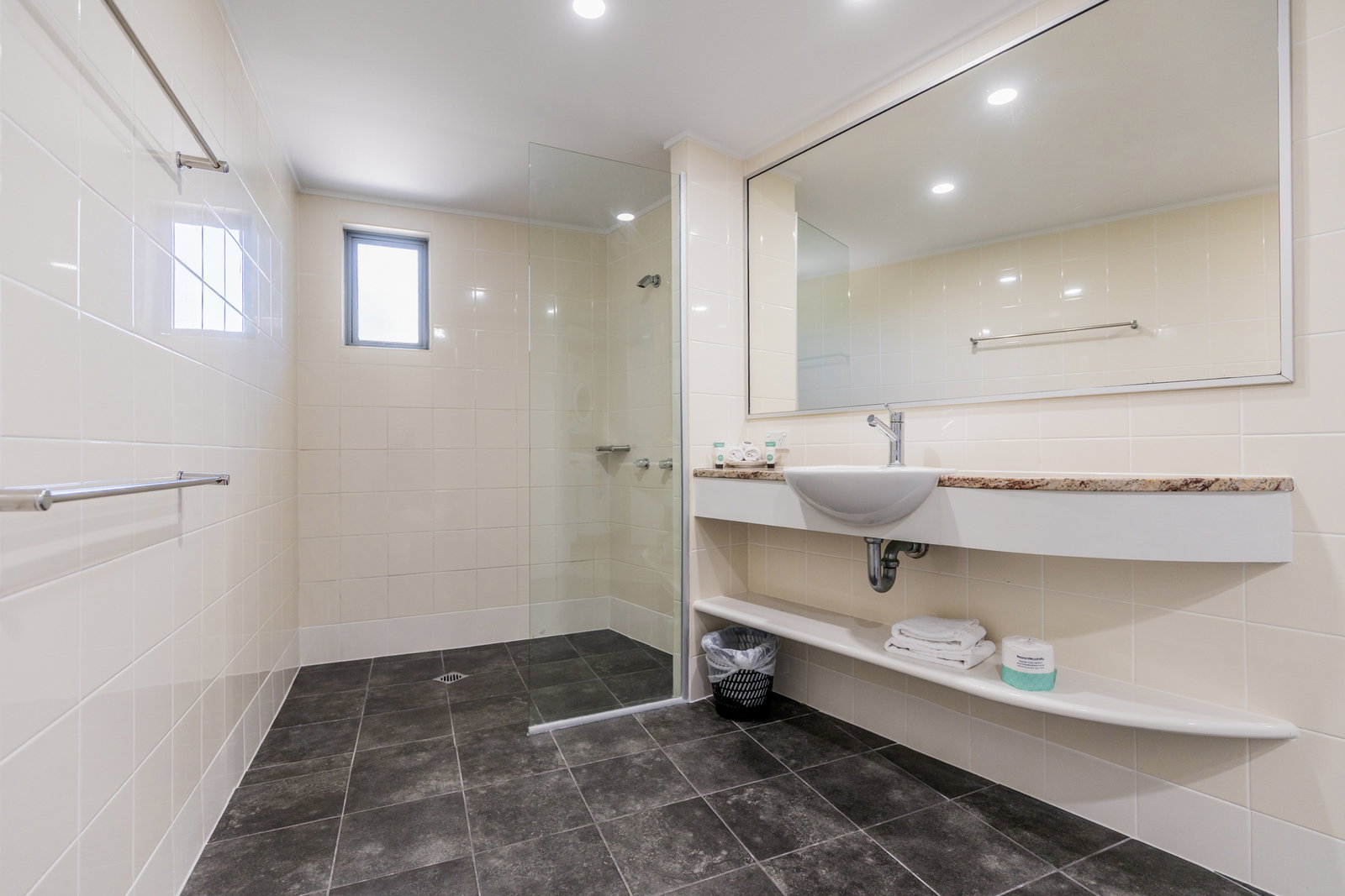 -2 bathrooms, with the main bathroom featuring recently redone waterproofing for added peace of mind