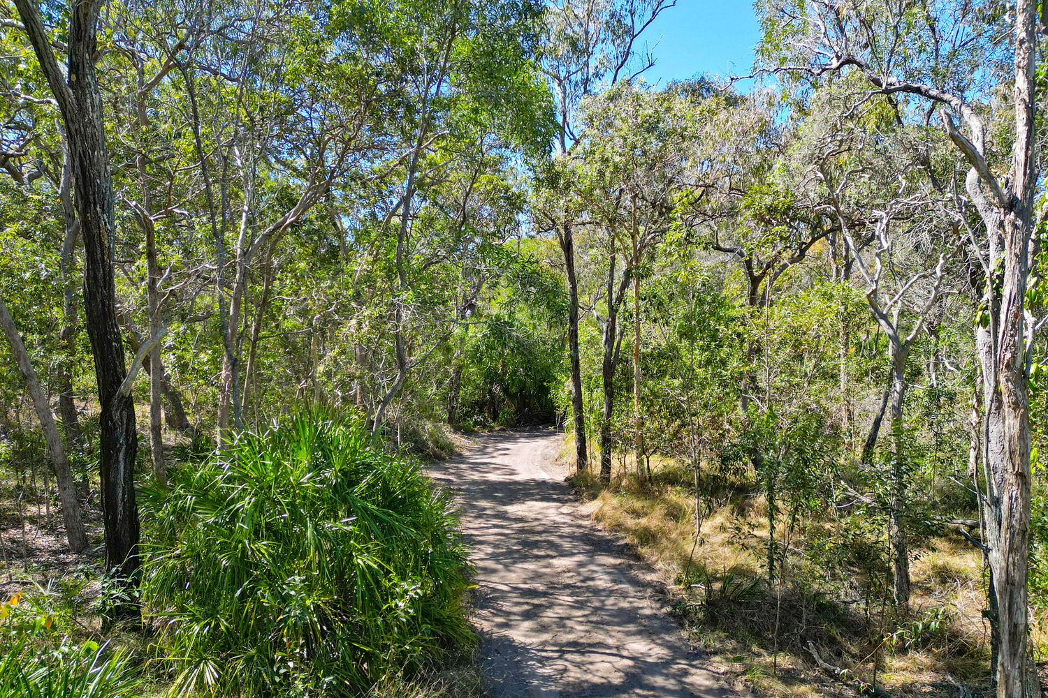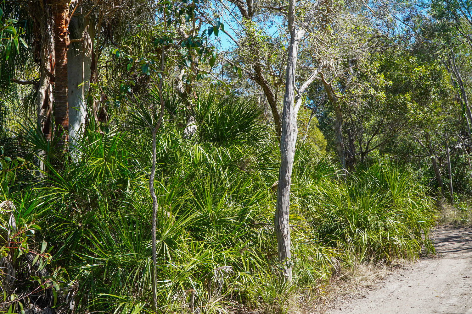 - A meandering track winds through forest and palms invites exploration under the canopy.