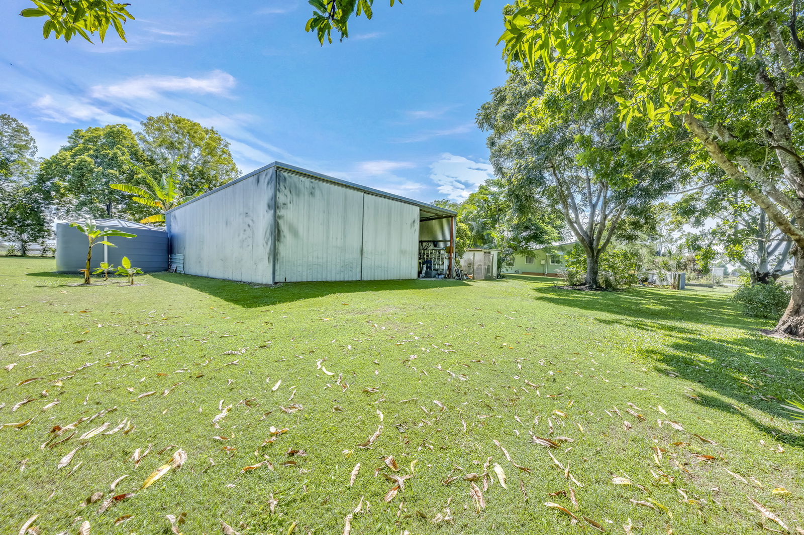- Established fruit trees: banana, citrus varieties, mango, avocado, macadamia, and more