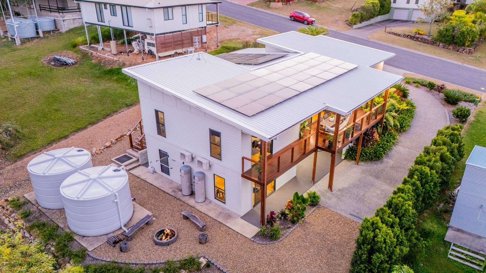 • Two large 25,000L rainwater tanks