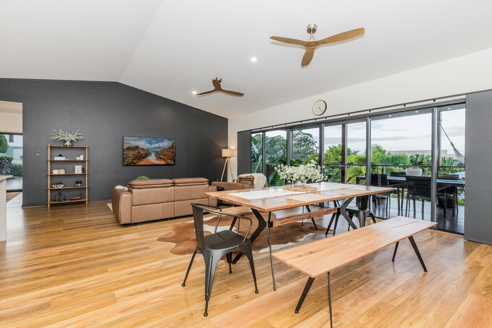 Step inside and you’re immediately drawn to the design, style, space, and flow of the home. Raked ceilings and open-plan living create a sense of calm, while the main living area seamlessly connects to a generous entertaining deck—perfect for hosting, relaxing, and embracing the coastal lifestyle.