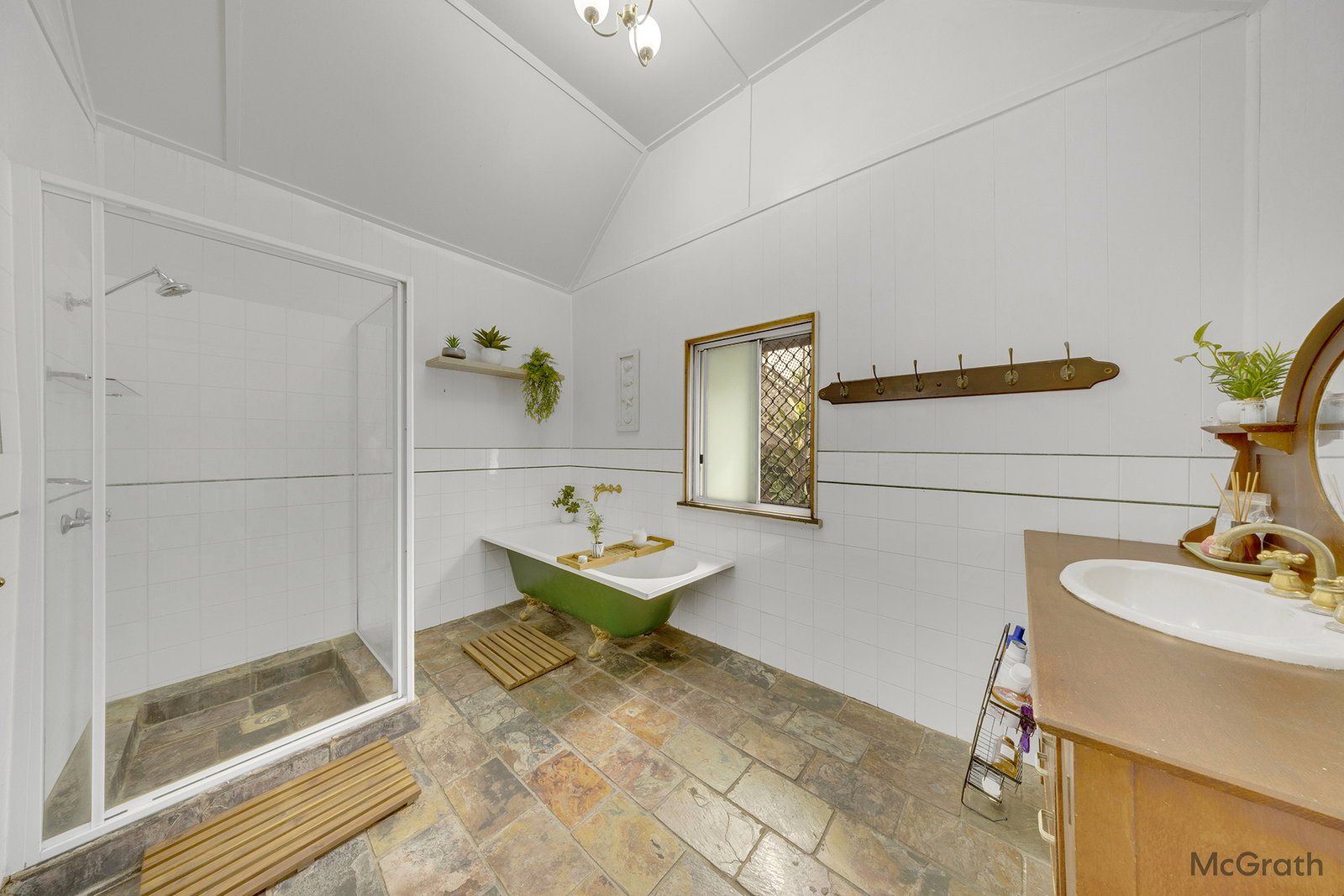 Designed for year-round comfort, the home is equipped with central ducted air-conditioning, complementing its naturally breezy layout. The modern-style kitchen serves as the heart of the home, flowing through to a separate living area ideal for relaxing or entertaining. The main bathroom features distinctive slate tiling, with the convenience of a separate toilet and basin.