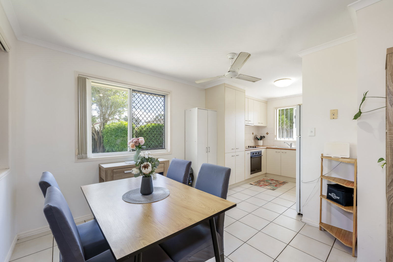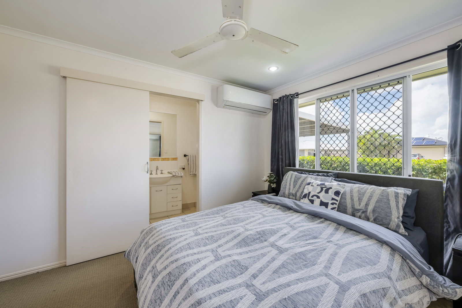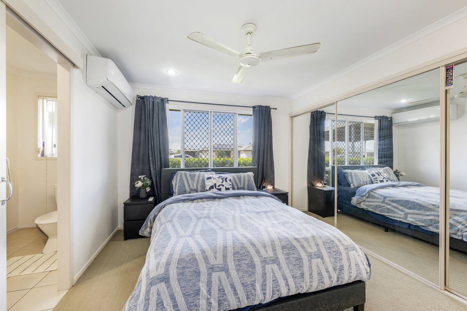 Accommodation is thoughtfully designed for comfort and flexibility. The four bedrooms are generously sized, each featuring built-in wardrobes and ceiling fans, with the master bedroom further enhanced by air conditioning and a full-size ensuite. The second bedroom also includes air conditioning, while the remaining bedrooms remain comfortable with ceiling fans. The separate study provides additional functional space, perfect for a home office, hobby room, or potential conversion into a butler's pantry.