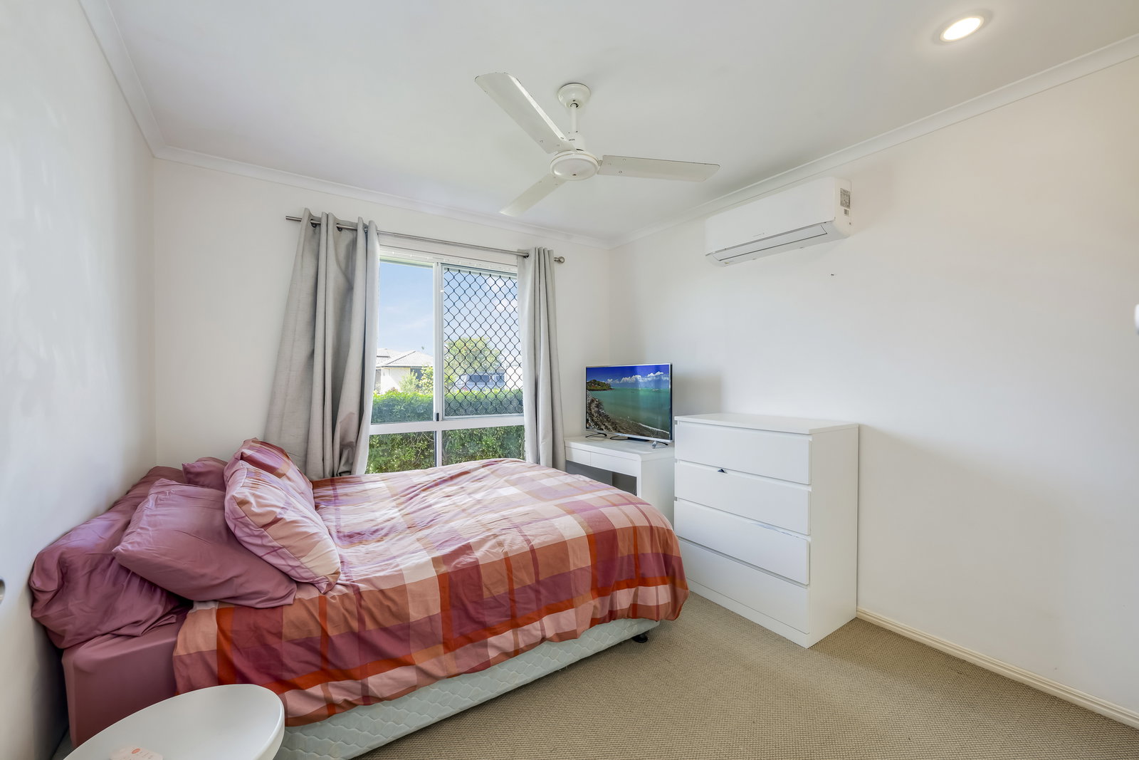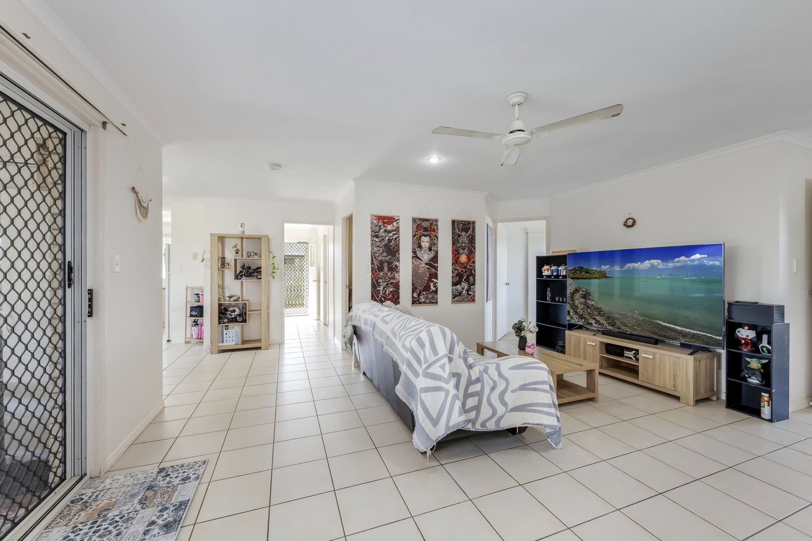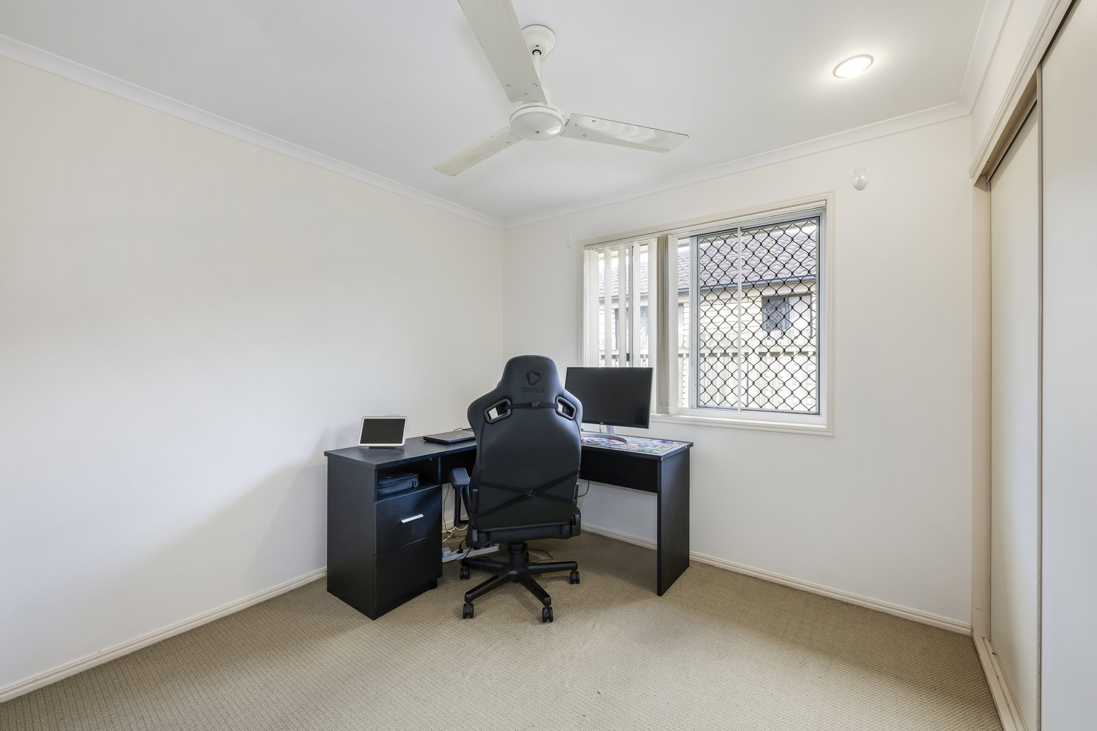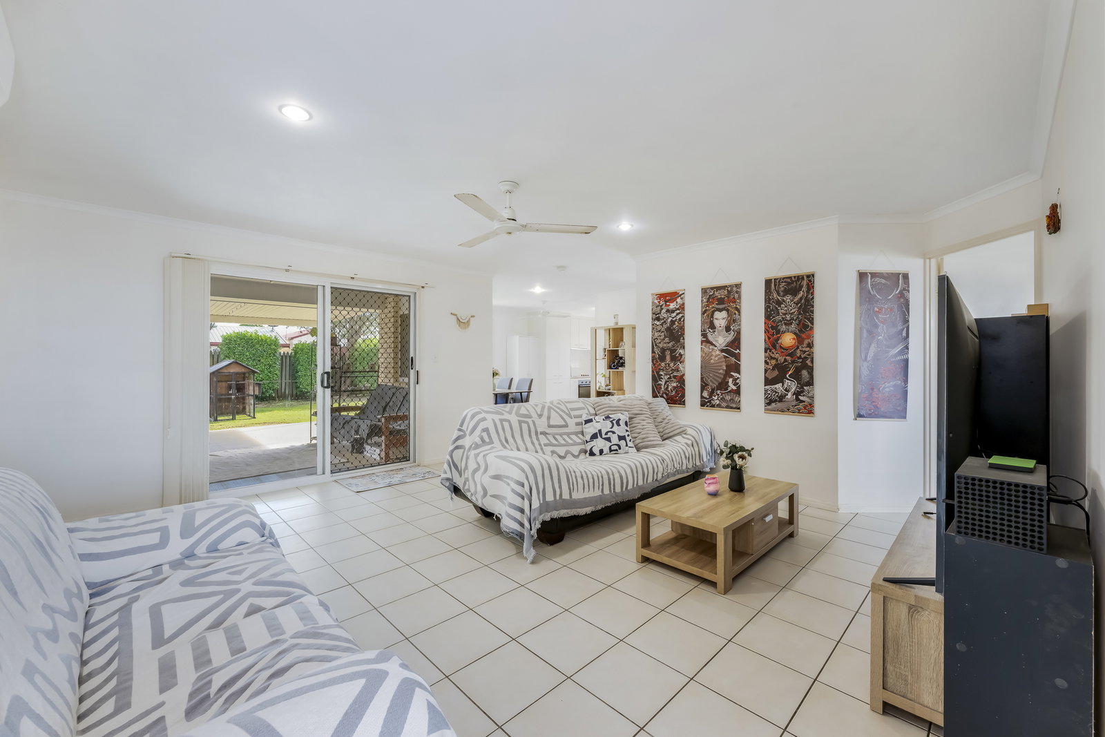 Accommodation is thoughtfully designed for comfort and flexibility. The four bedrooms are generously sized, each featuring built-in wardrobes and ceiling fans, with the master bedroom further enhanced by air conditioning and a full-size ensuite. The second bedroom also includes air conditioning, while the remaining bedrooms remain comfortable with ceiling fans. The separate study provides additional functional space, perfect for a home office, hobby room, or potential conversion into a butler's pantry.