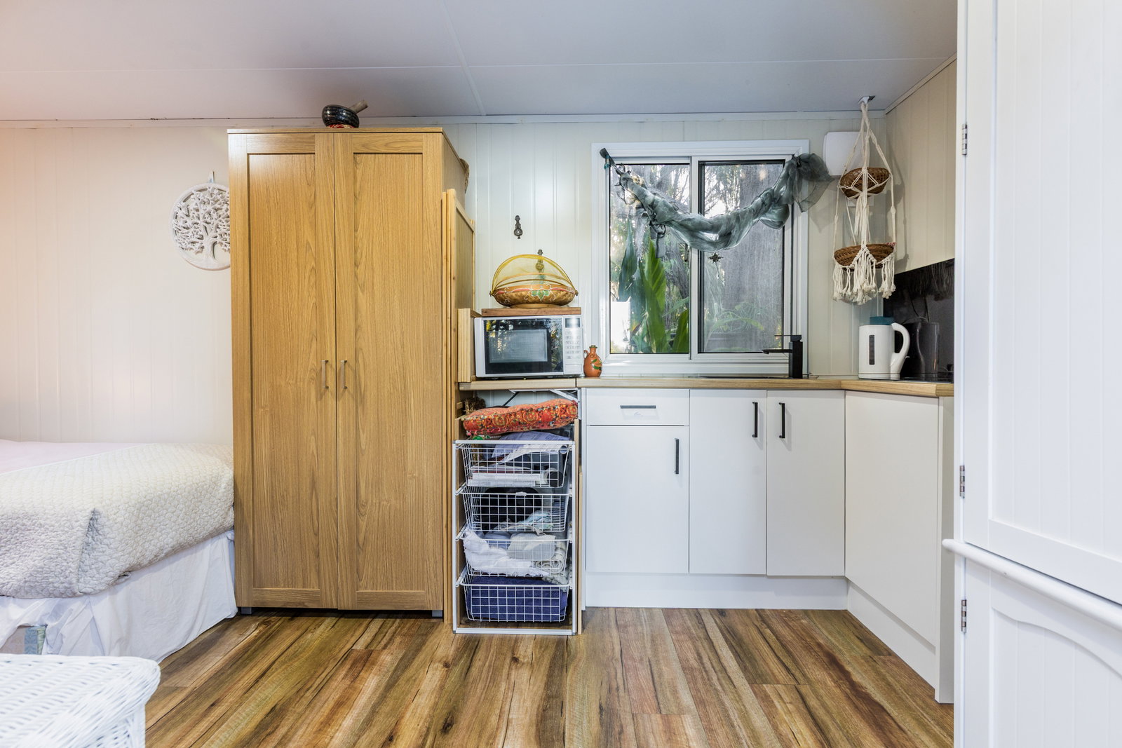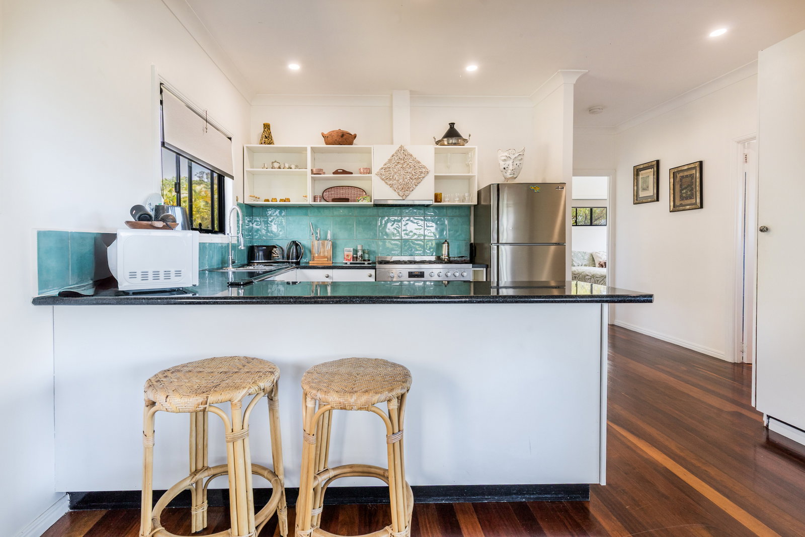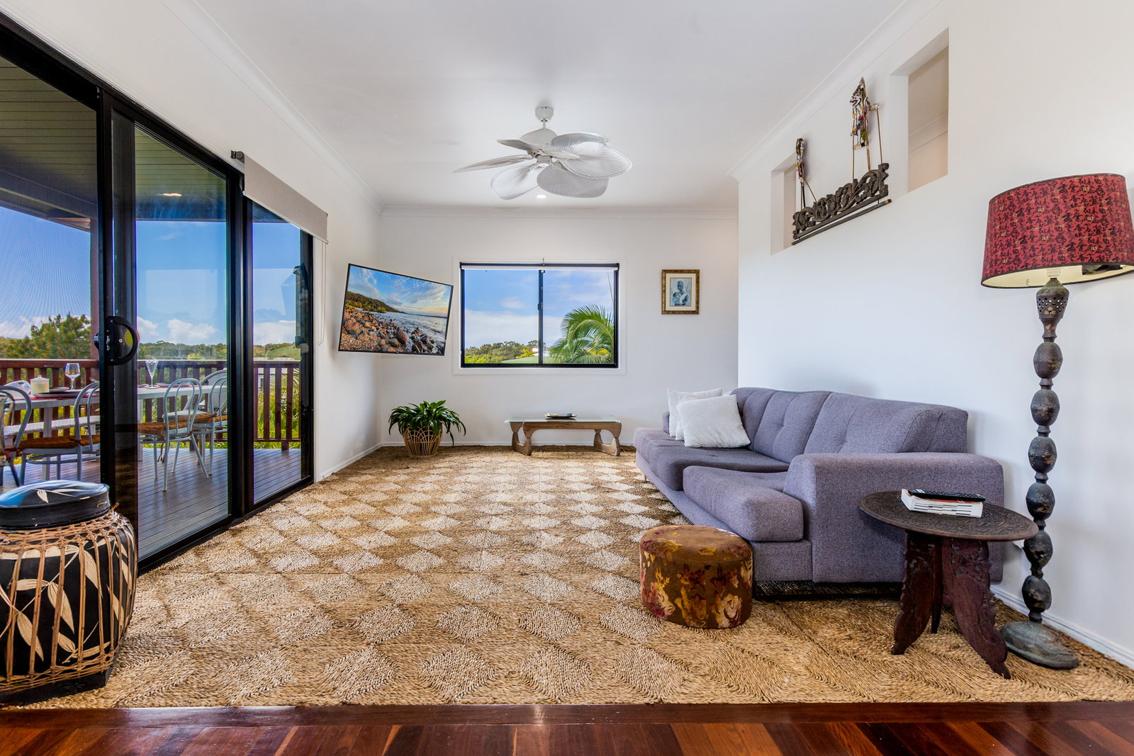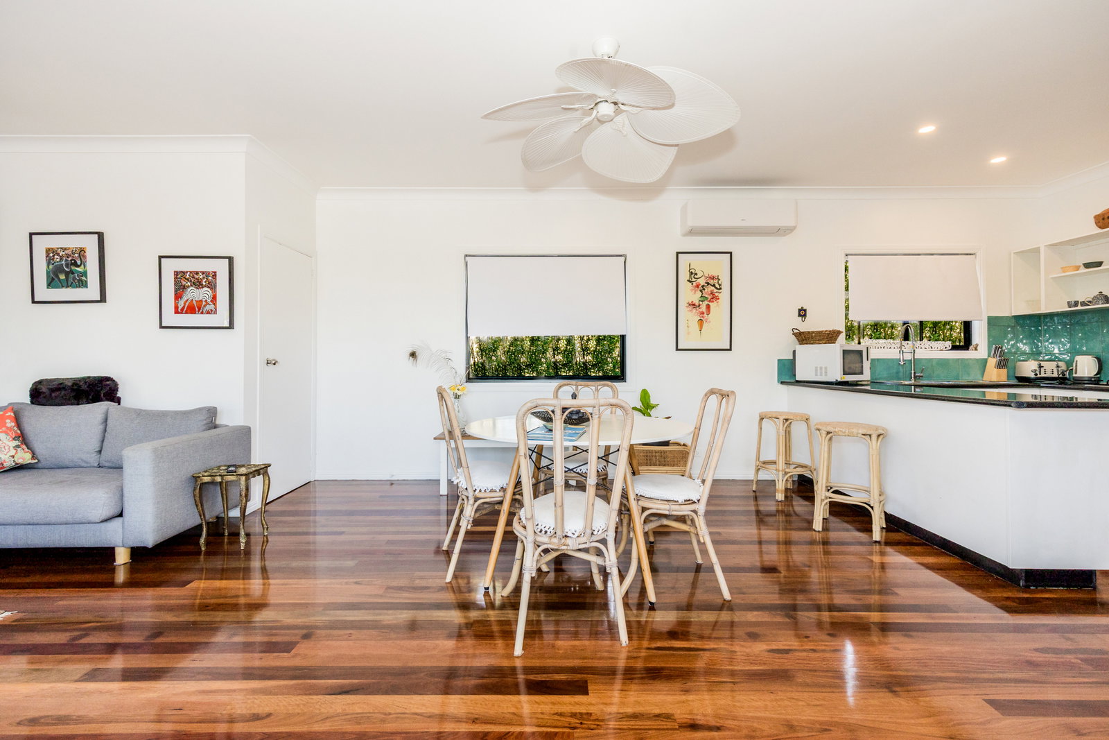 Both levels of the main residence flow seamlessly from open-plan living and dining to wide, sun-drenched decks with great ocean views. Polished timber floors and high ceilings enhance the sense of space, while large windows and sliding doors invite natural light and sea breezes throughout.
