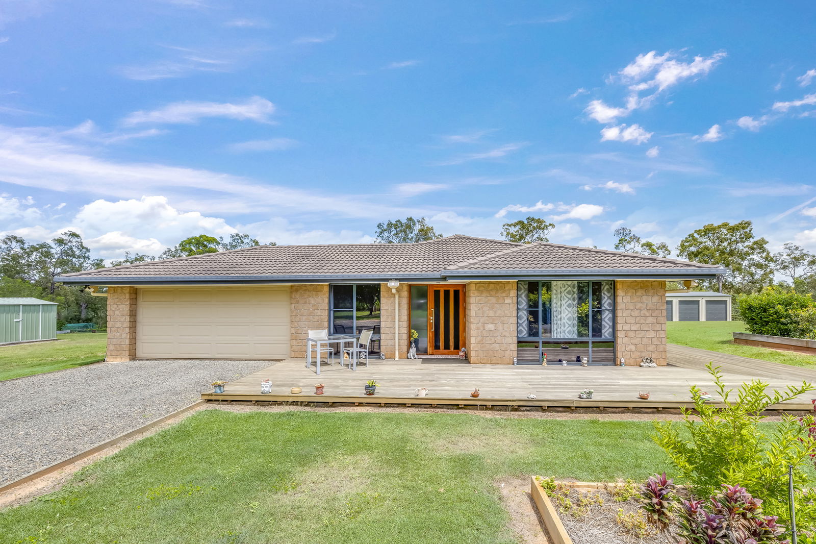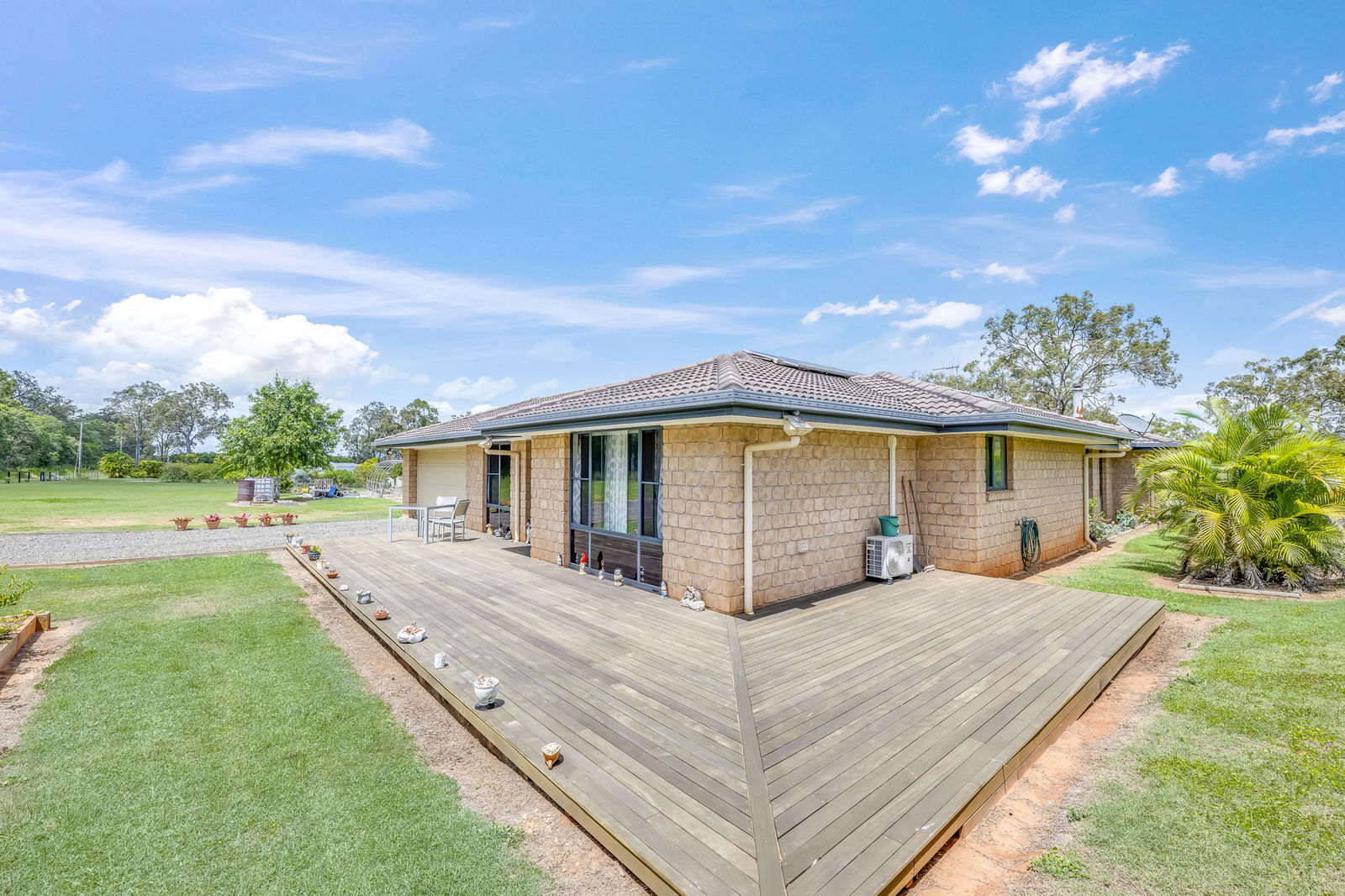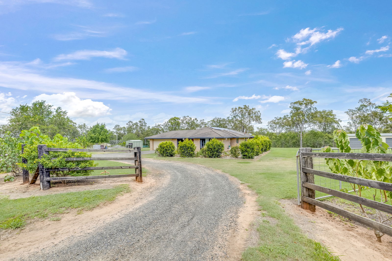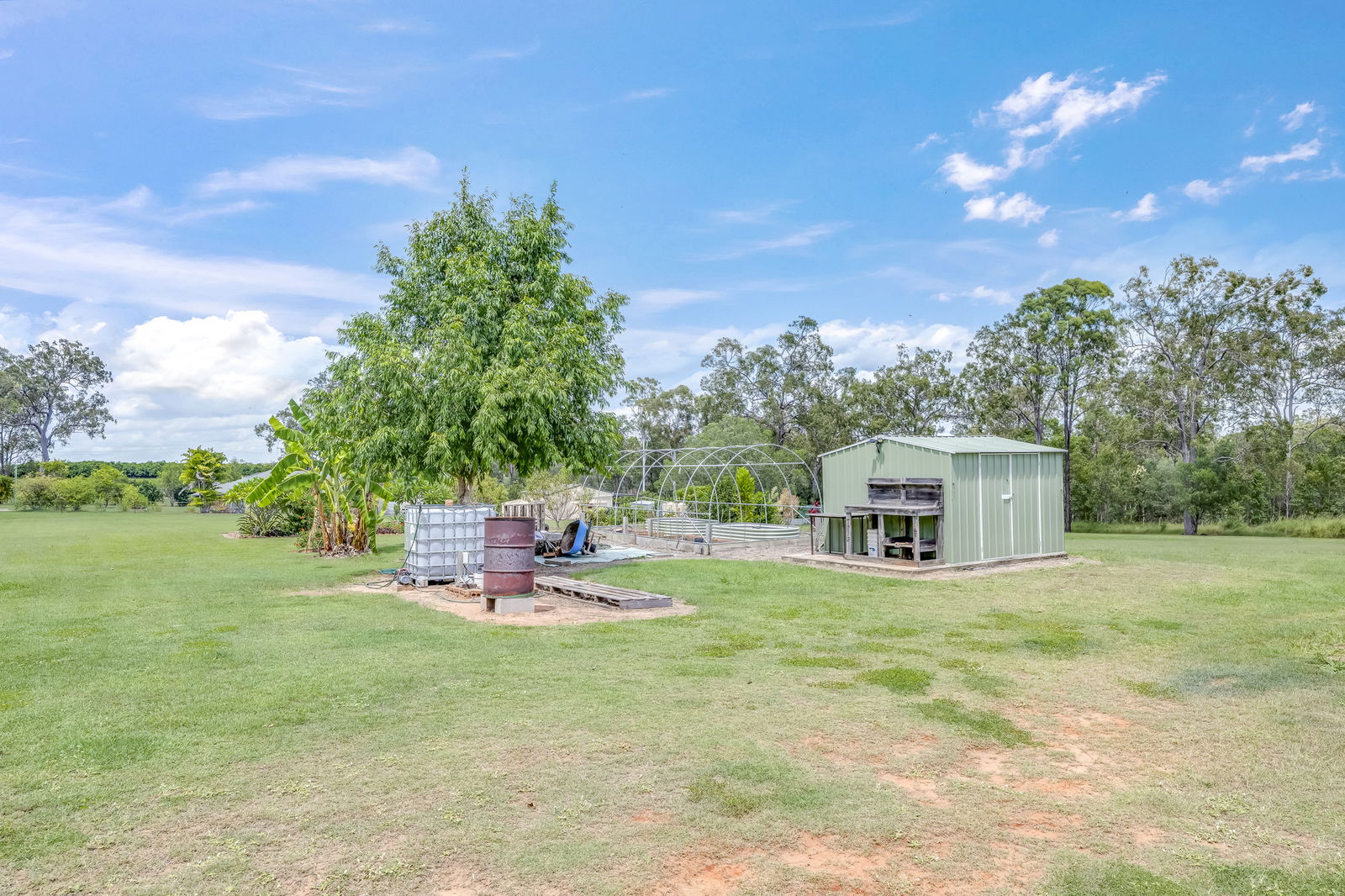 Established gardens include peach, nectarine, pineapple and banana plantings, plus a vegetable patch supported by quality soil and reliable water supply.